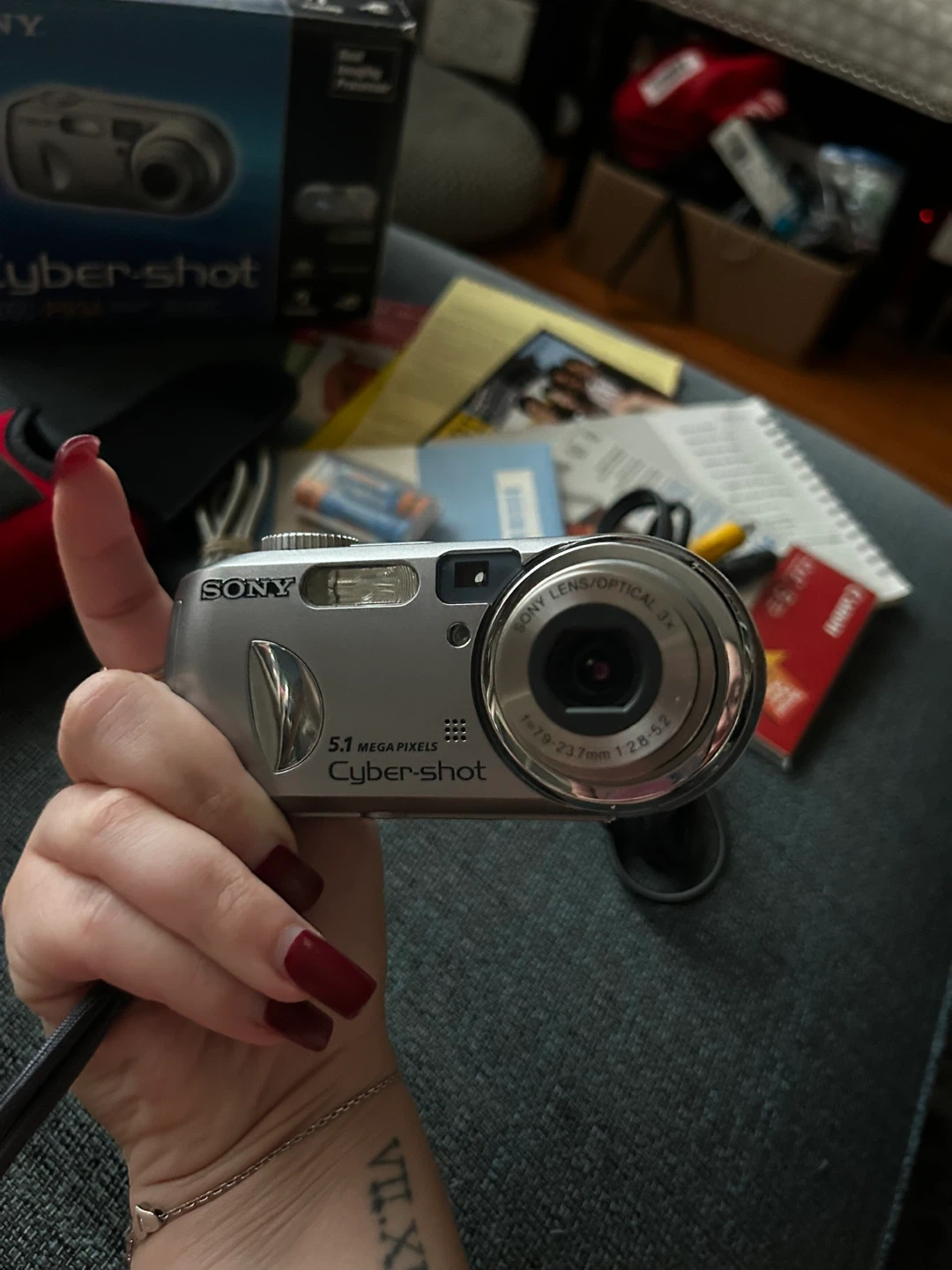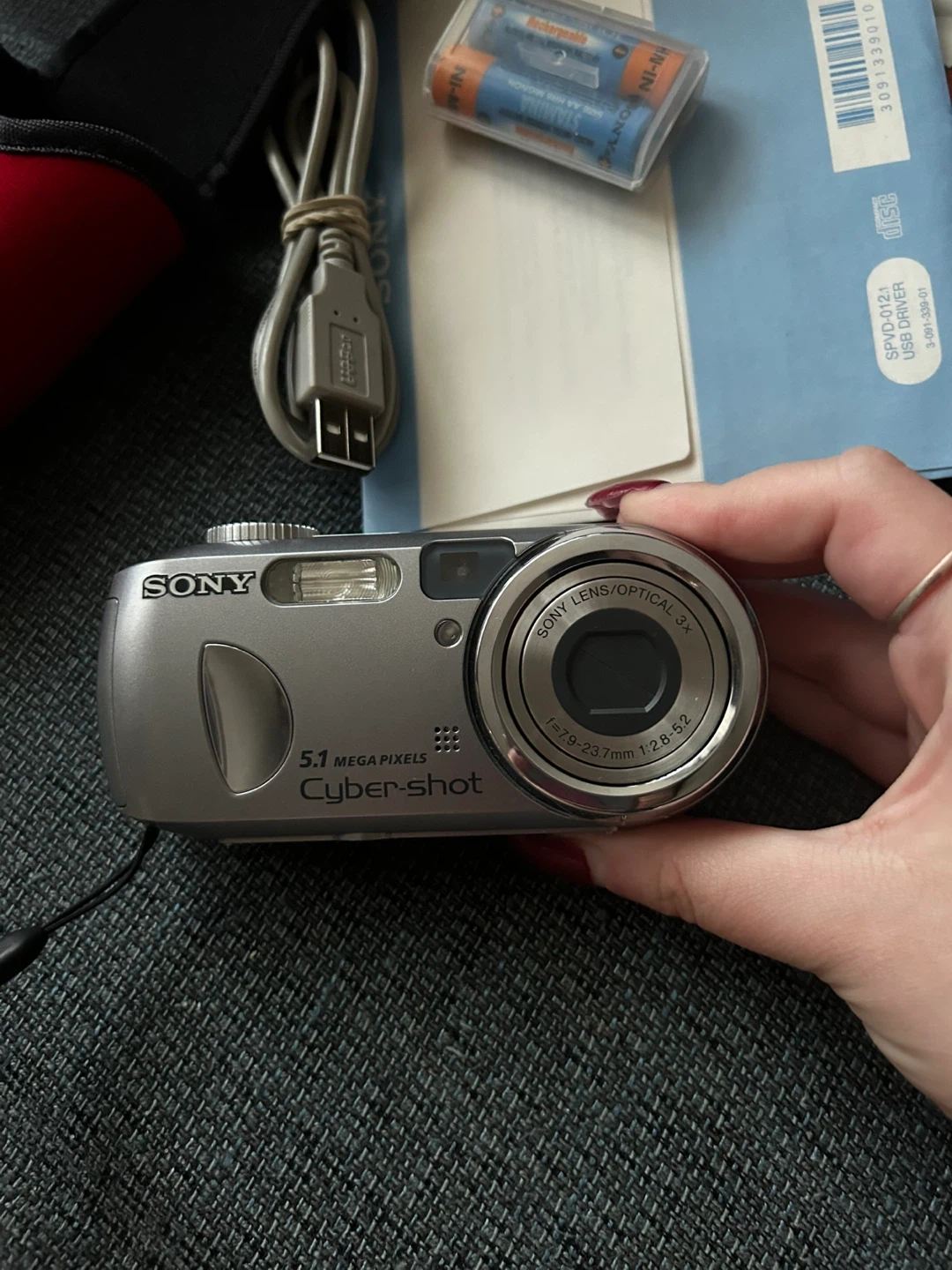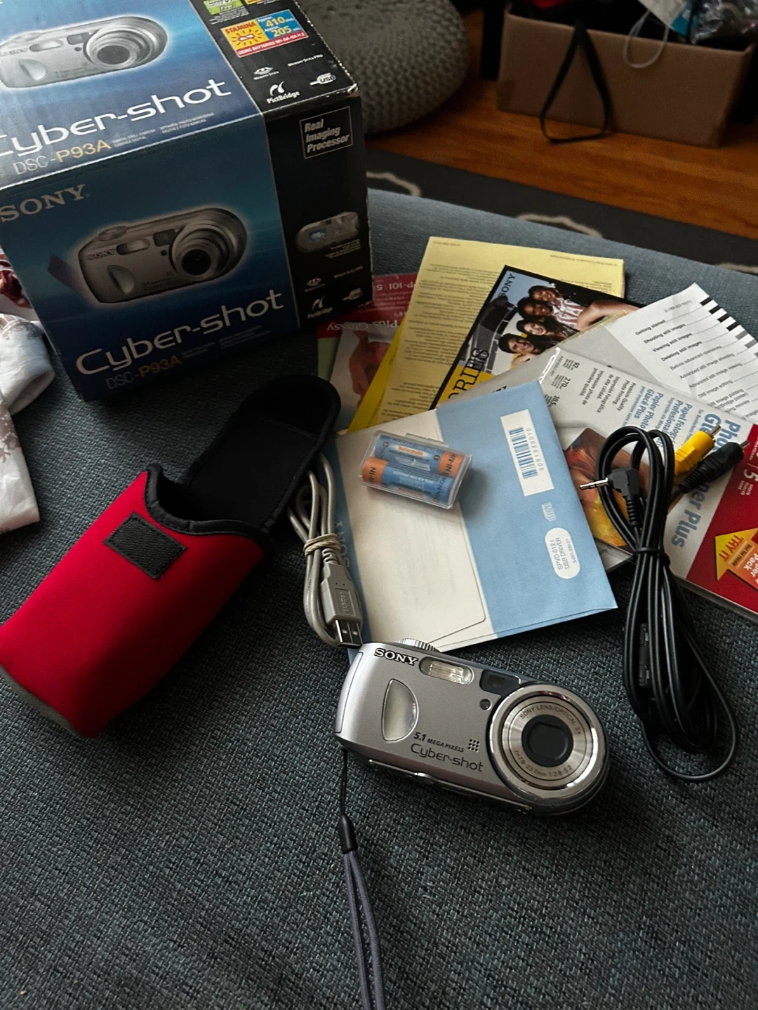 Selling a Sony Cyber-shot DSC-P93A digital camera! It comes with the box and all the original accessories, including the red carrying case, USB cable, and some paperwork. This camera boasts 5.1 megapixels and a 3x optical zoom. Great for capturing memories! Great working condition. 🎀Bundle items for discounts when purchasing more then one item🎀