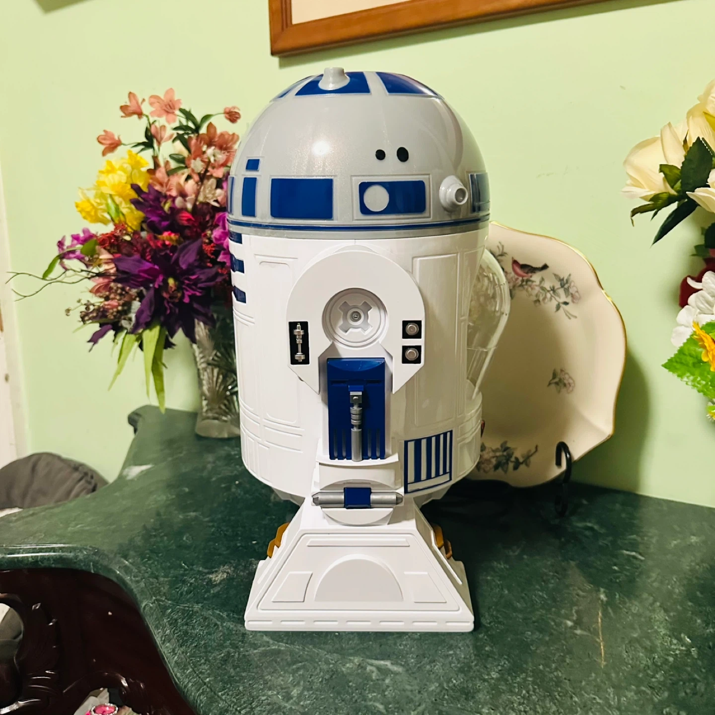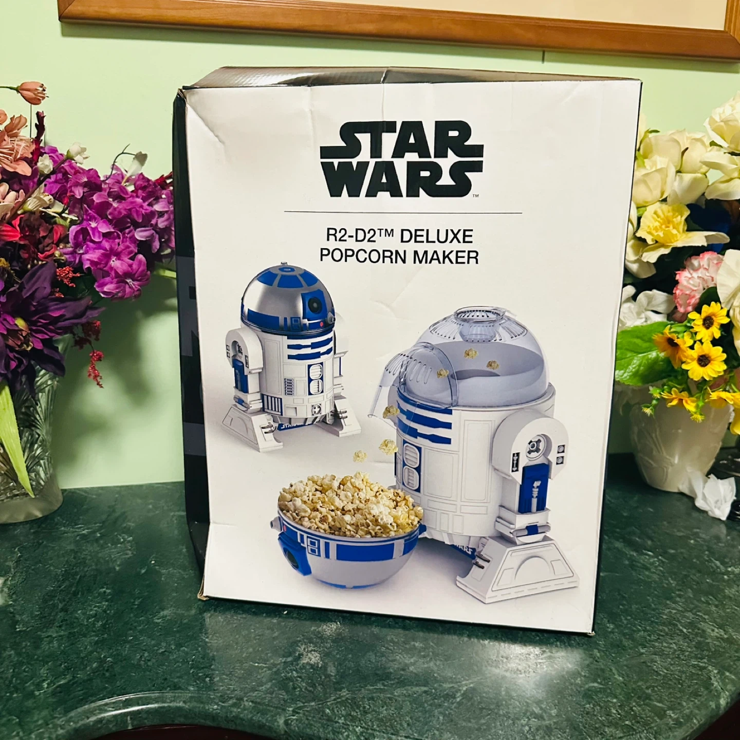 75Selling a Star Wars R2-D2 Deluxe Popcorn Maker! It's in great condition and ready to bring some fun to your movie nights. This popcorn maker is designed to look just like the iconic droid, R2-D2. It measures approximately 16 inches tall, 12.5 inches wide, and 9 inches deep. Perfect for any Star Wars fan!
