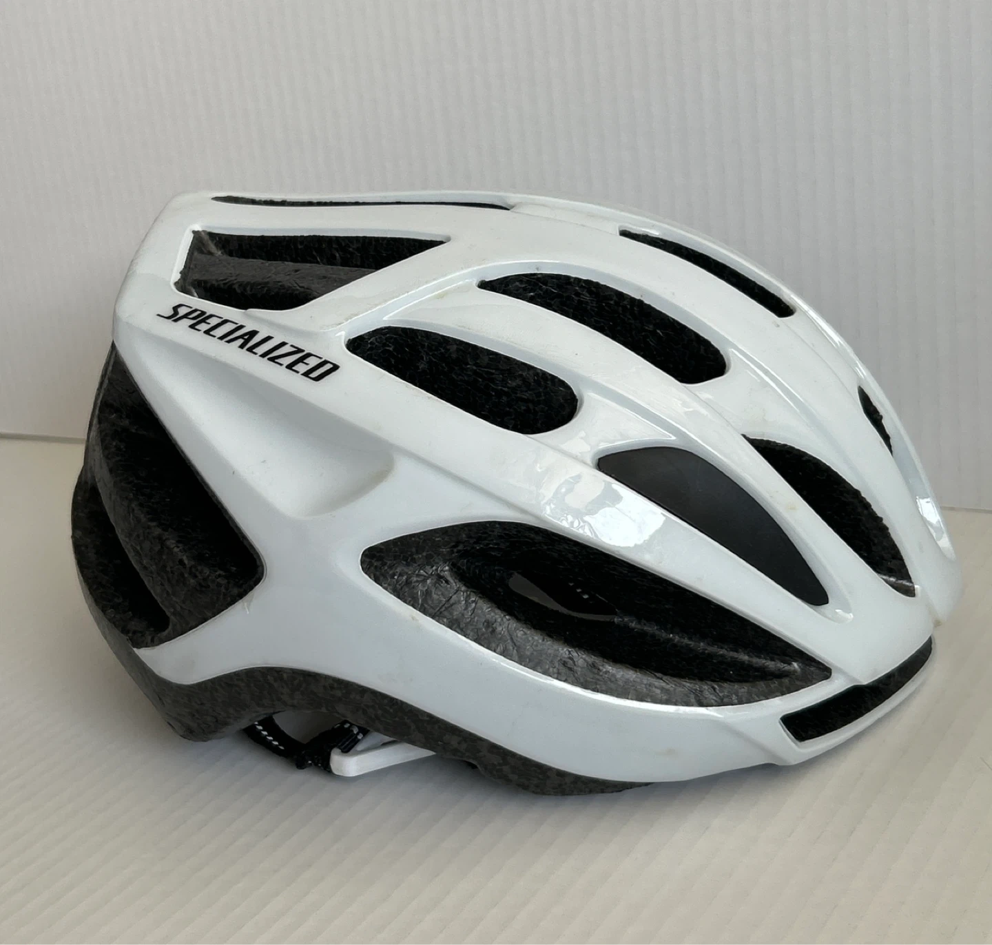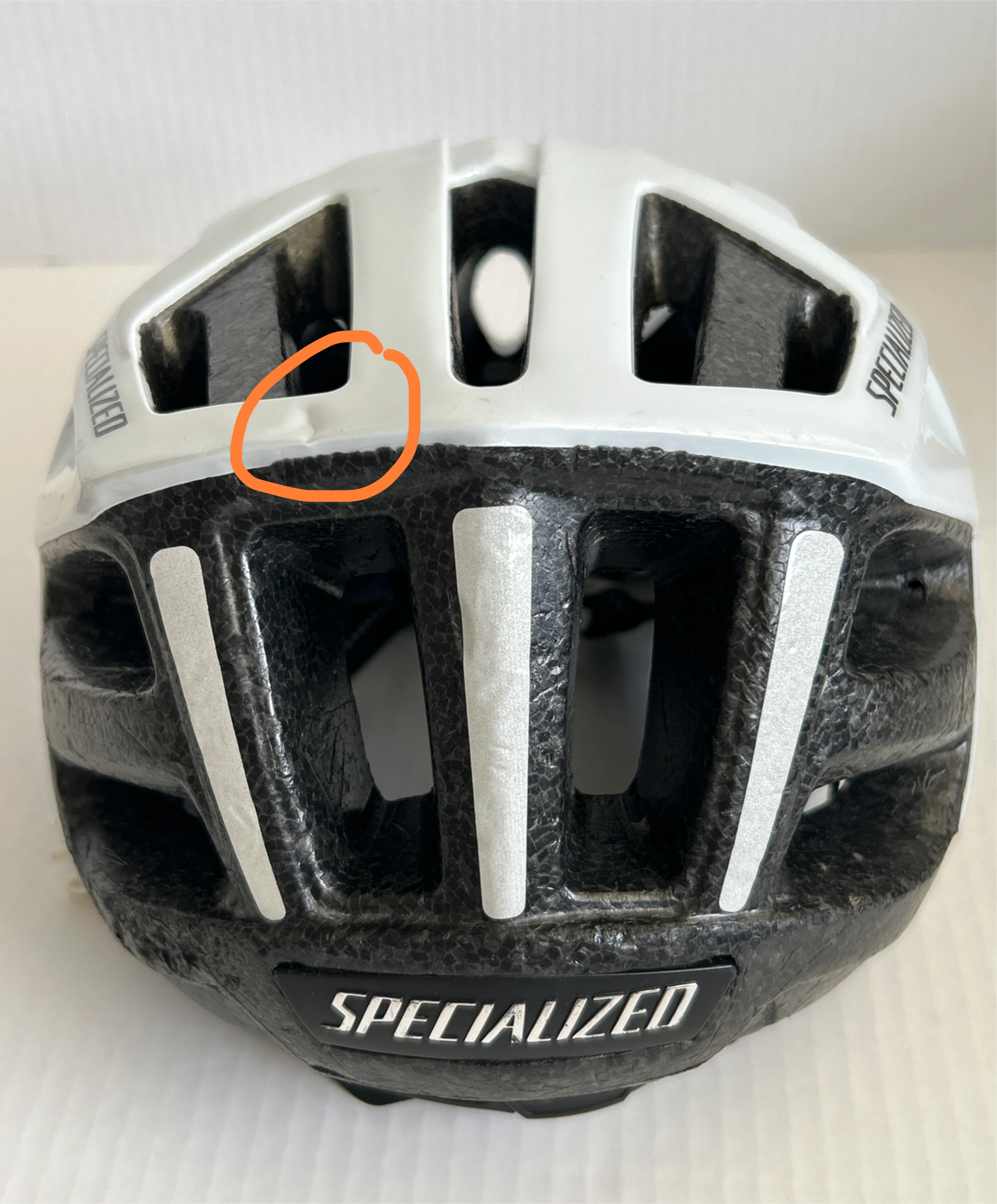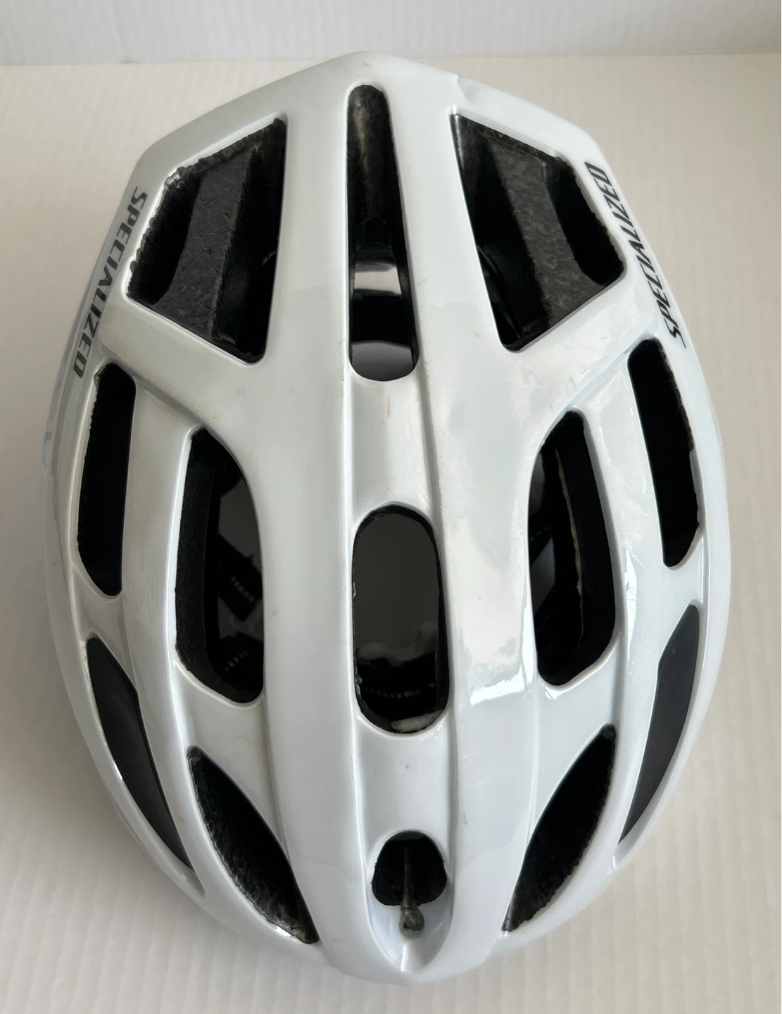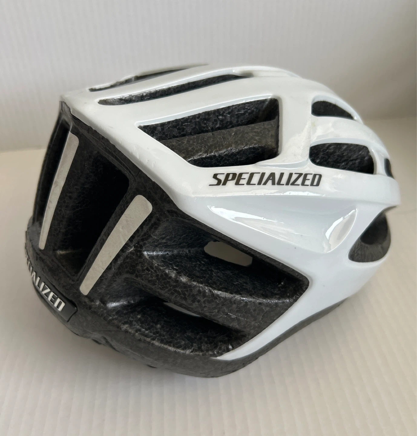 Selling a used Specialized youth bike helmet in white. There is a small dip on the front of the helmet as pictured, but otherwise in good condition! This is not an adult helmet. So please make sure to check out all photos provided. Smoke/Pet free home. Cash & Pick Up only.
