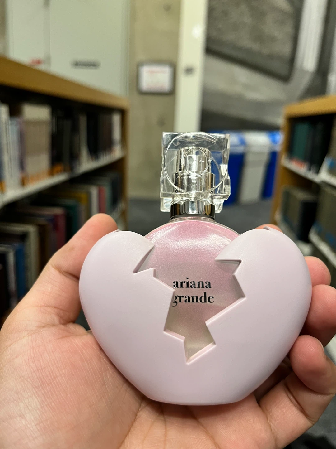 Ariana Grande's Thank U Next perfume! The bottle is in a heart shape. It's a light, sweet scent that's perfect for everyday wear.