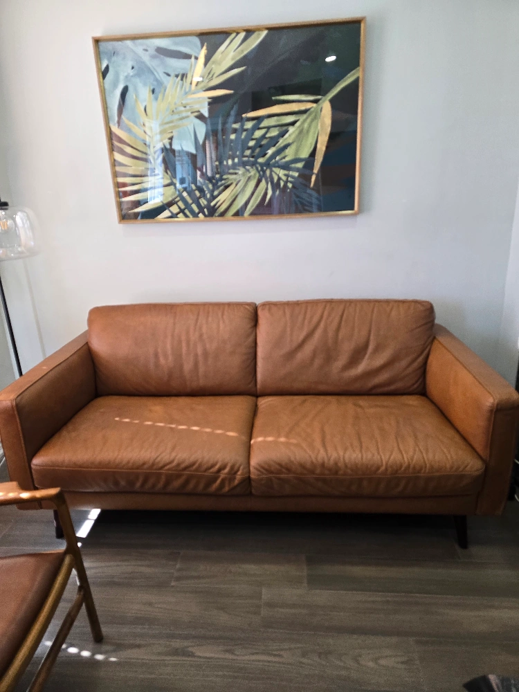 Selling a gently used brown Natuzzi leather sofa. It's in great condition and would look great in any living room or den. It's a comfortable and stylish piece of furniture!