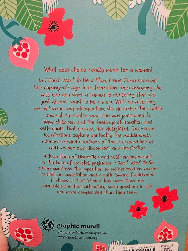 Selling the book "I Don't Want to Be a Mom" by Irene Olmo! It's a true story of questioning the societal expectations of motherhood. The book has full-colour illustrations.