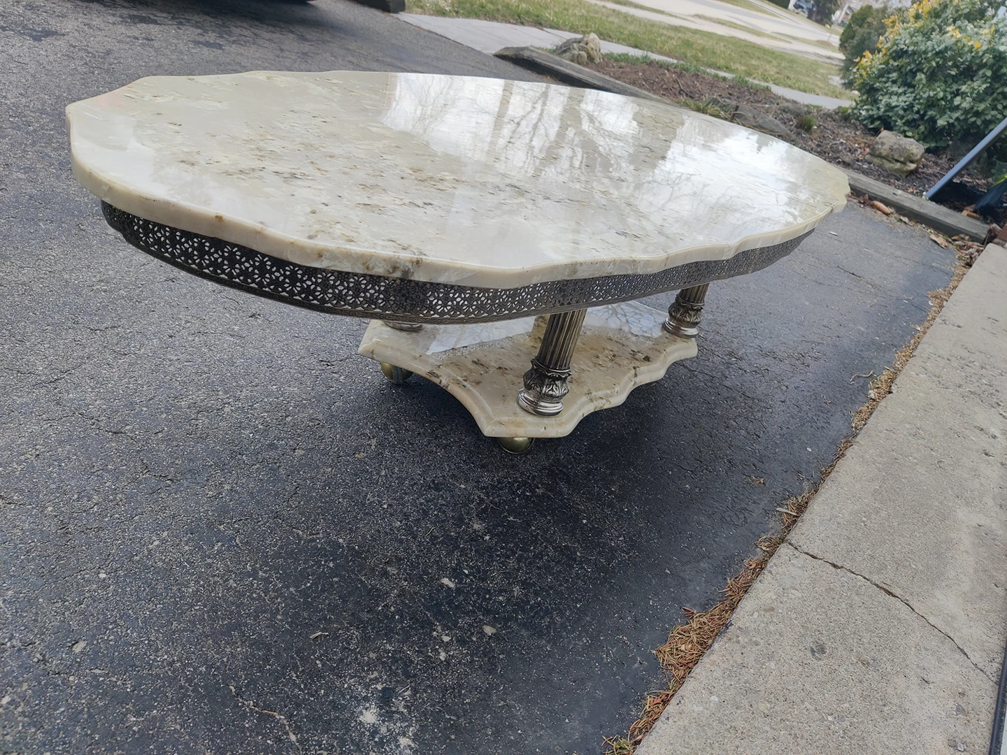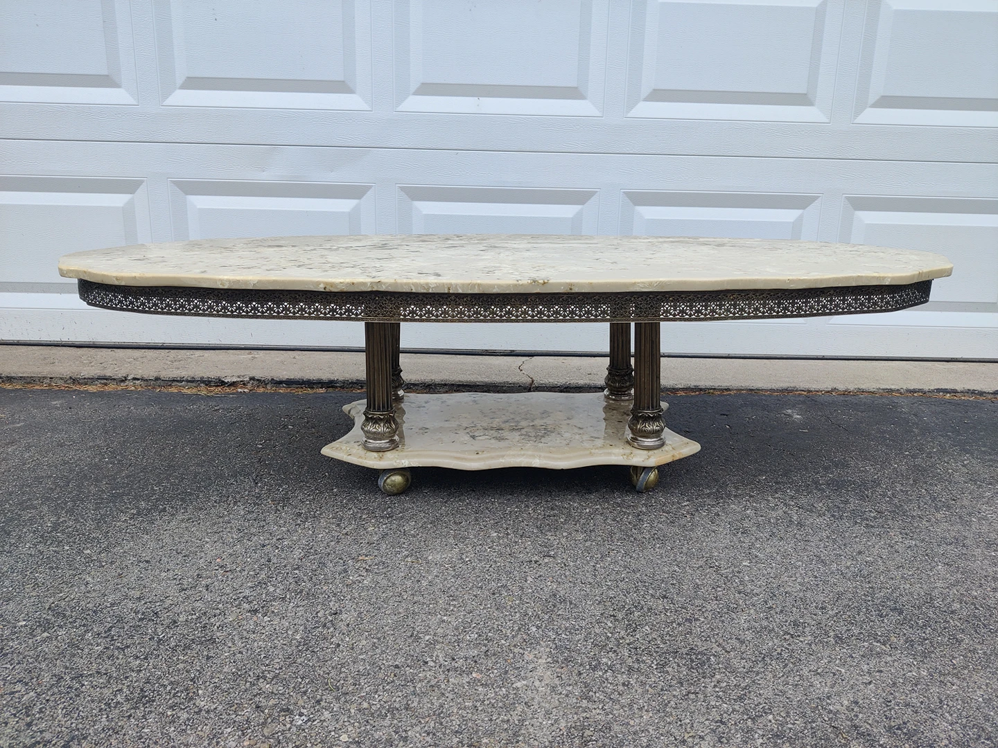 Vintage marble coffee table on wheels