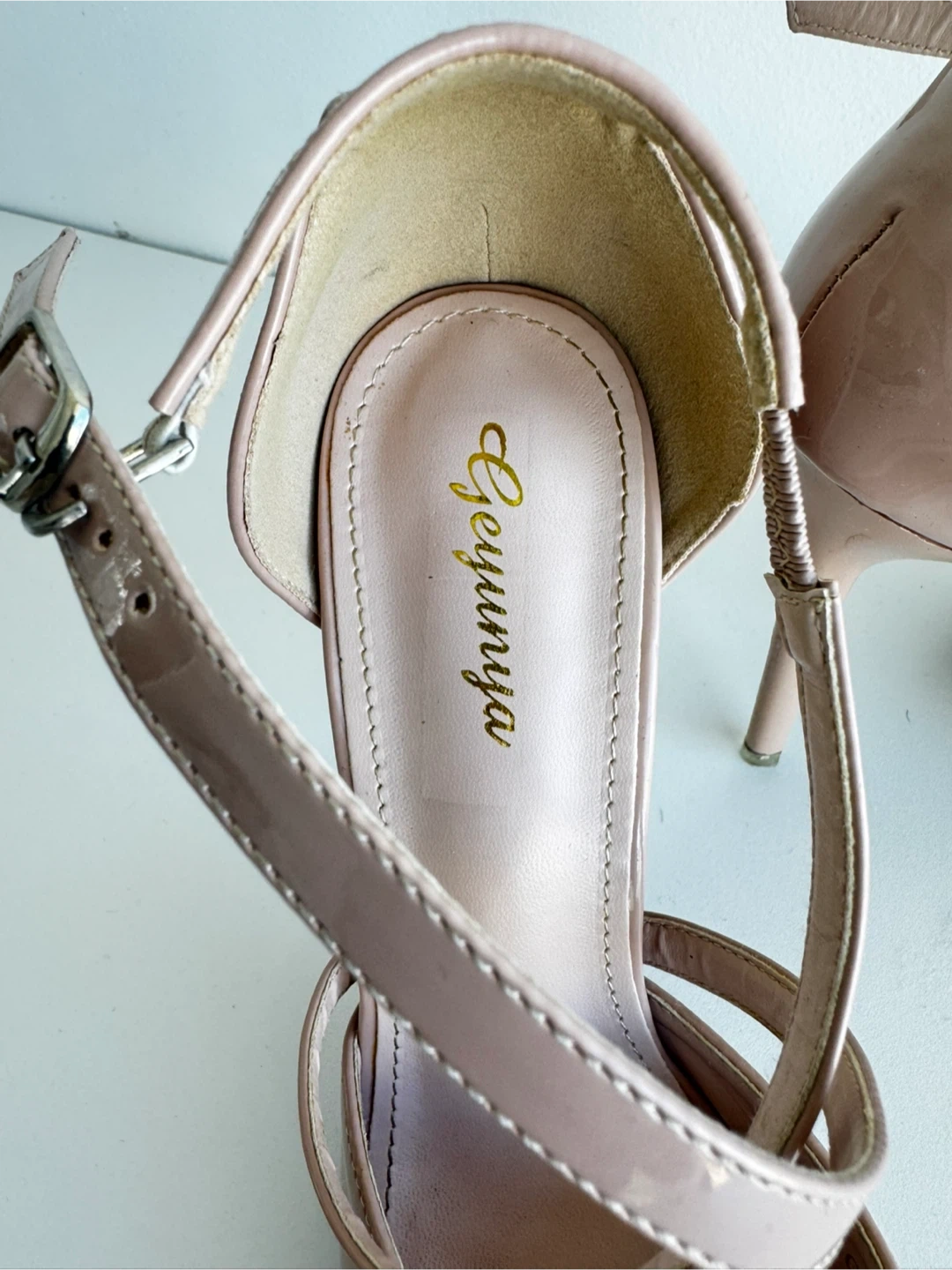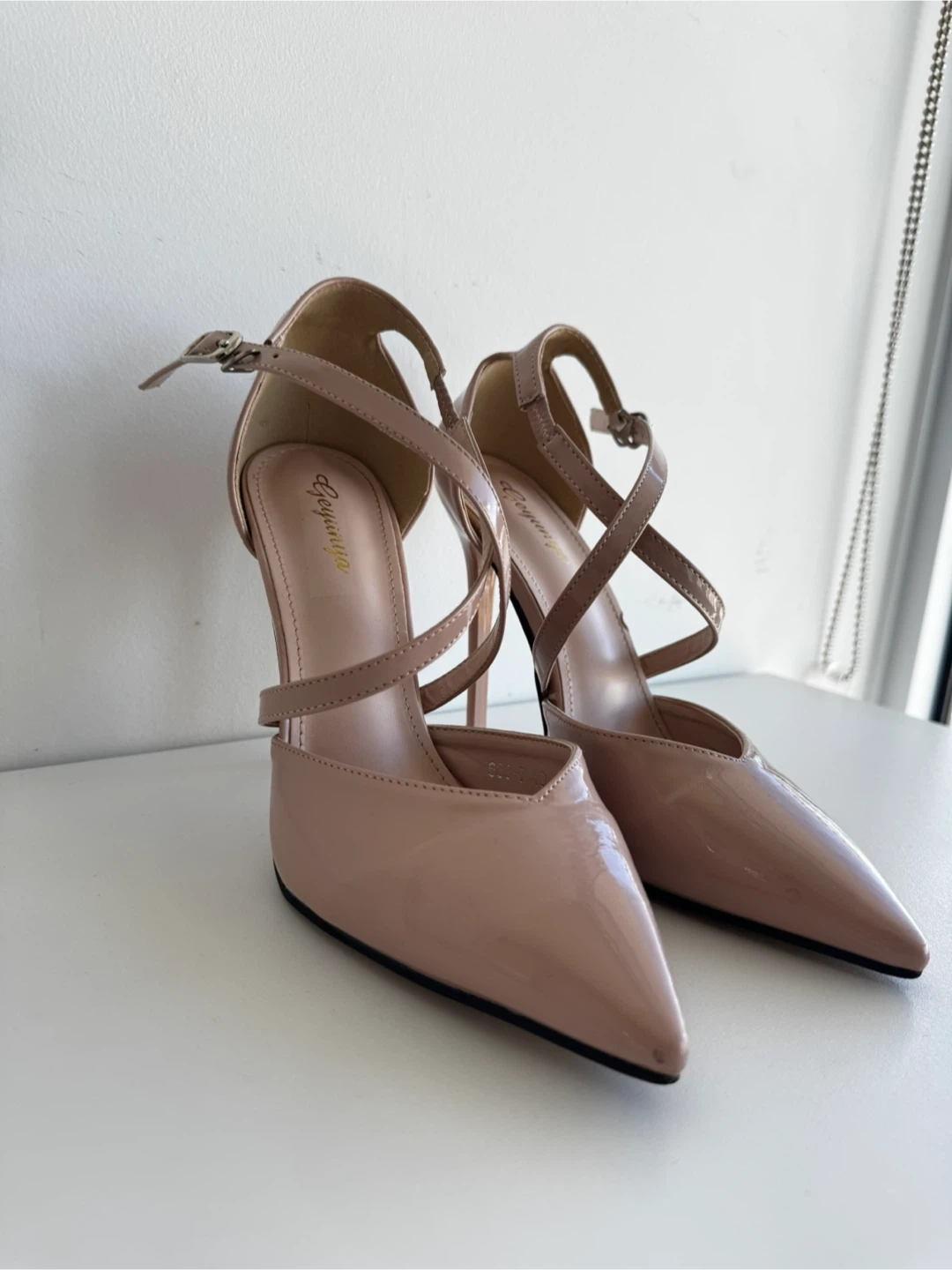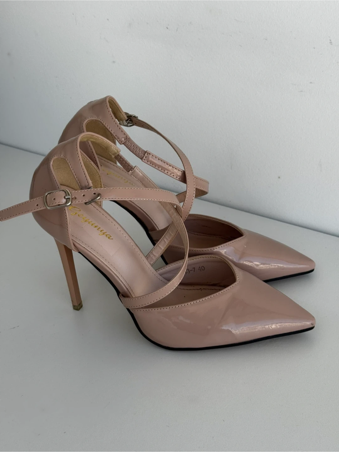 These are a pair of heels in a lovely pink colour. They're a size 7. They feature a stylish cross strap design. Perfect for a night out!