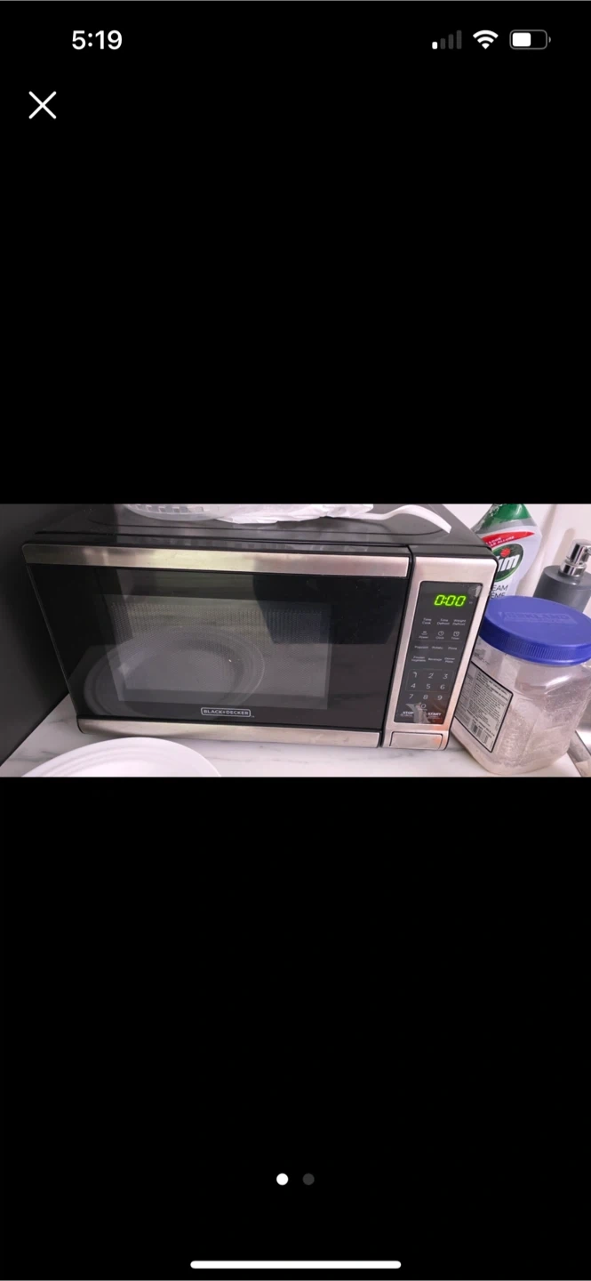 Selling a practically brand new Black+Decker microwave oven! It's a model EM720CB7 and features a stainless steel finish. It's a 0.7 cu ft, 700W microwave. The box is included!