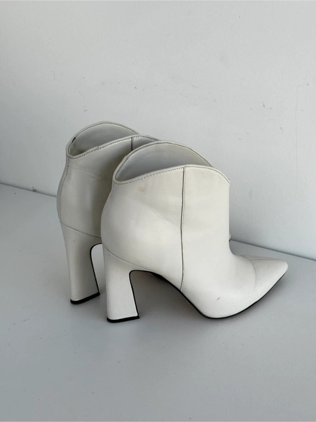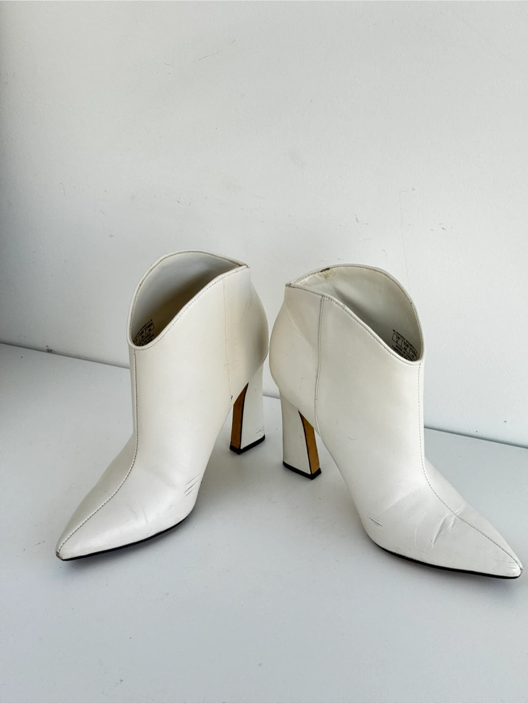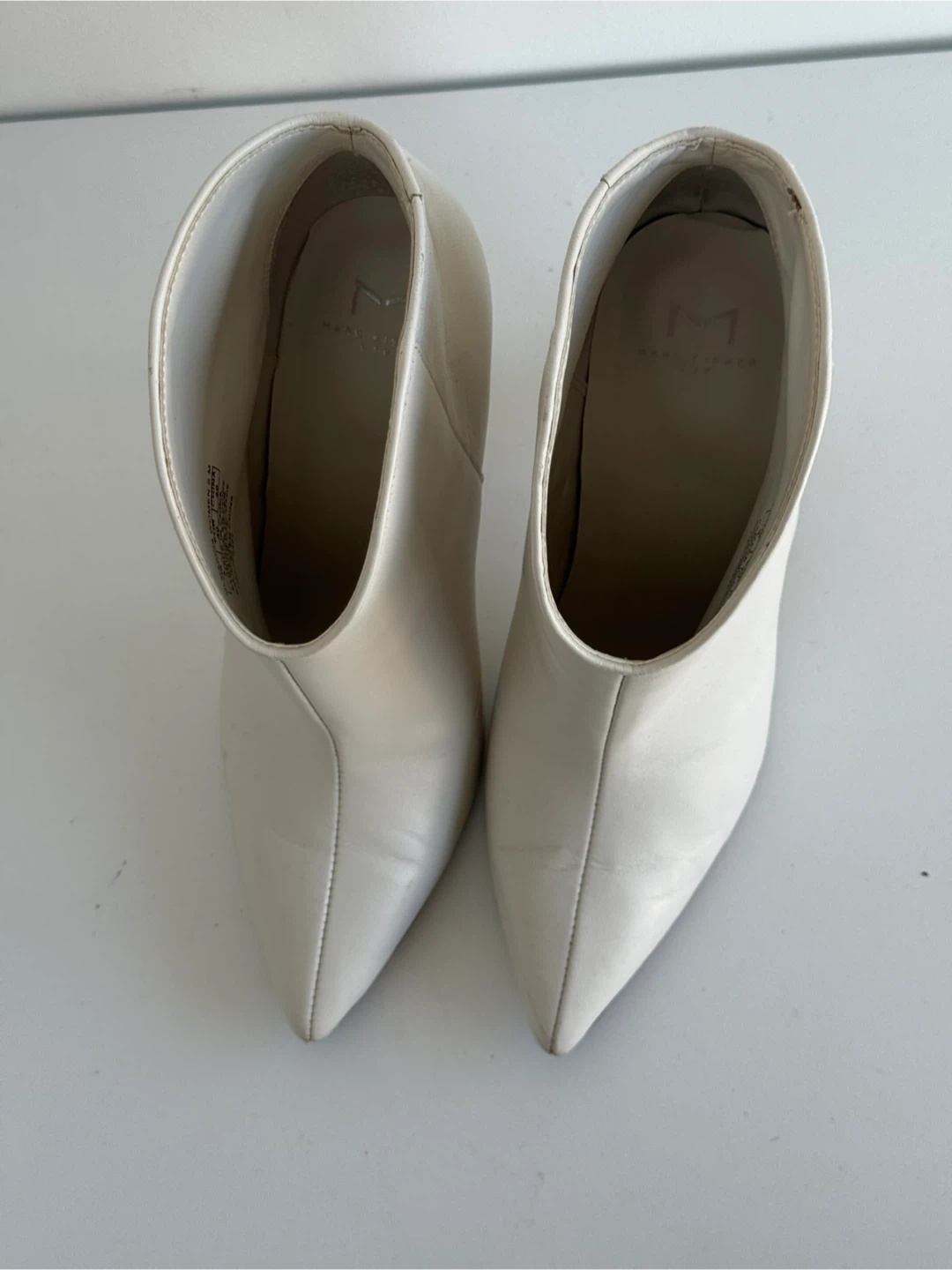 Selling a pair of Marc Fisher MLMASINA women's booties in US size 9. These stylish booties are made with a leather upper and have a heel. They are white in colour and would be a great addition to any wardrobe!
