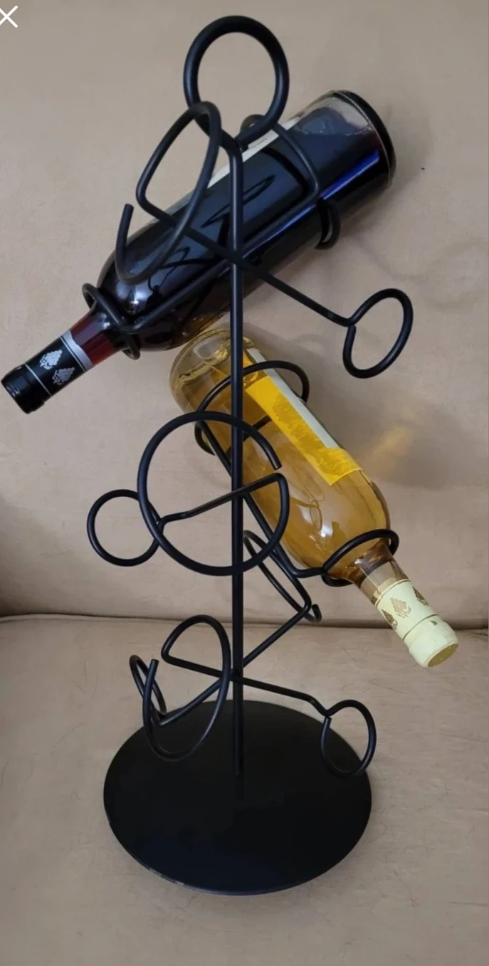 🌱 Black iron Wine Rack hold 6 bottles, with a handle.