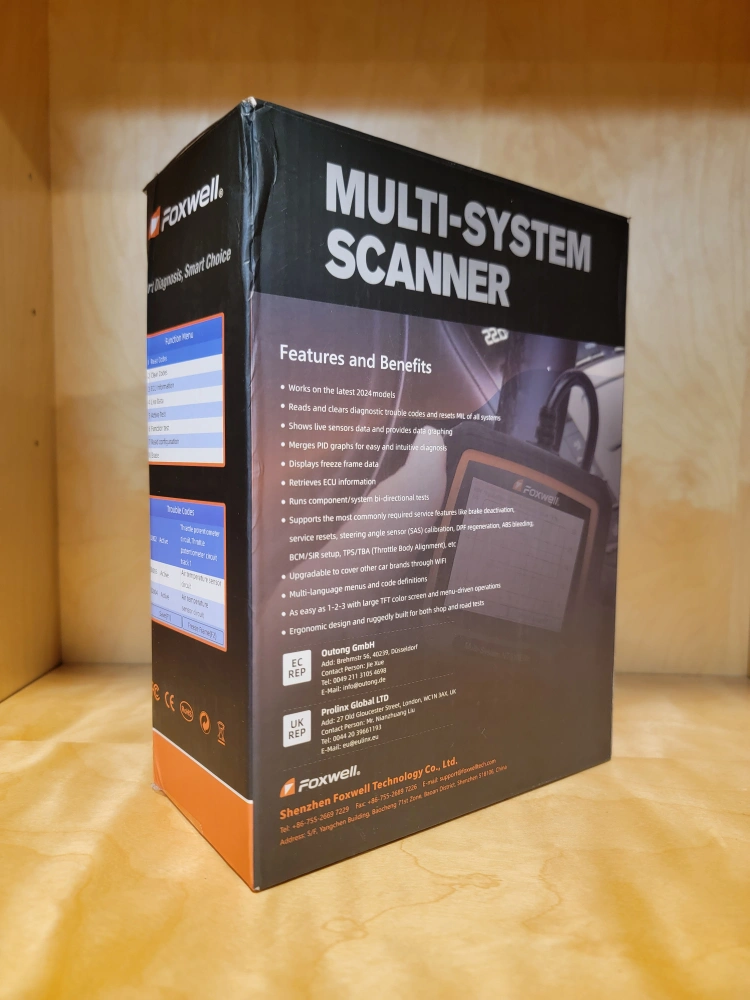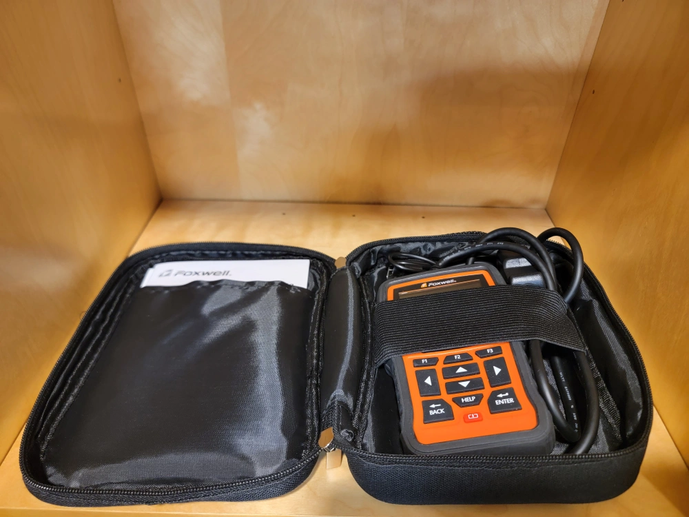 Foxwell nt510 elite porsche obd 2 scanner. Box includes old scanner, carry bag, manual and a usbc cable.