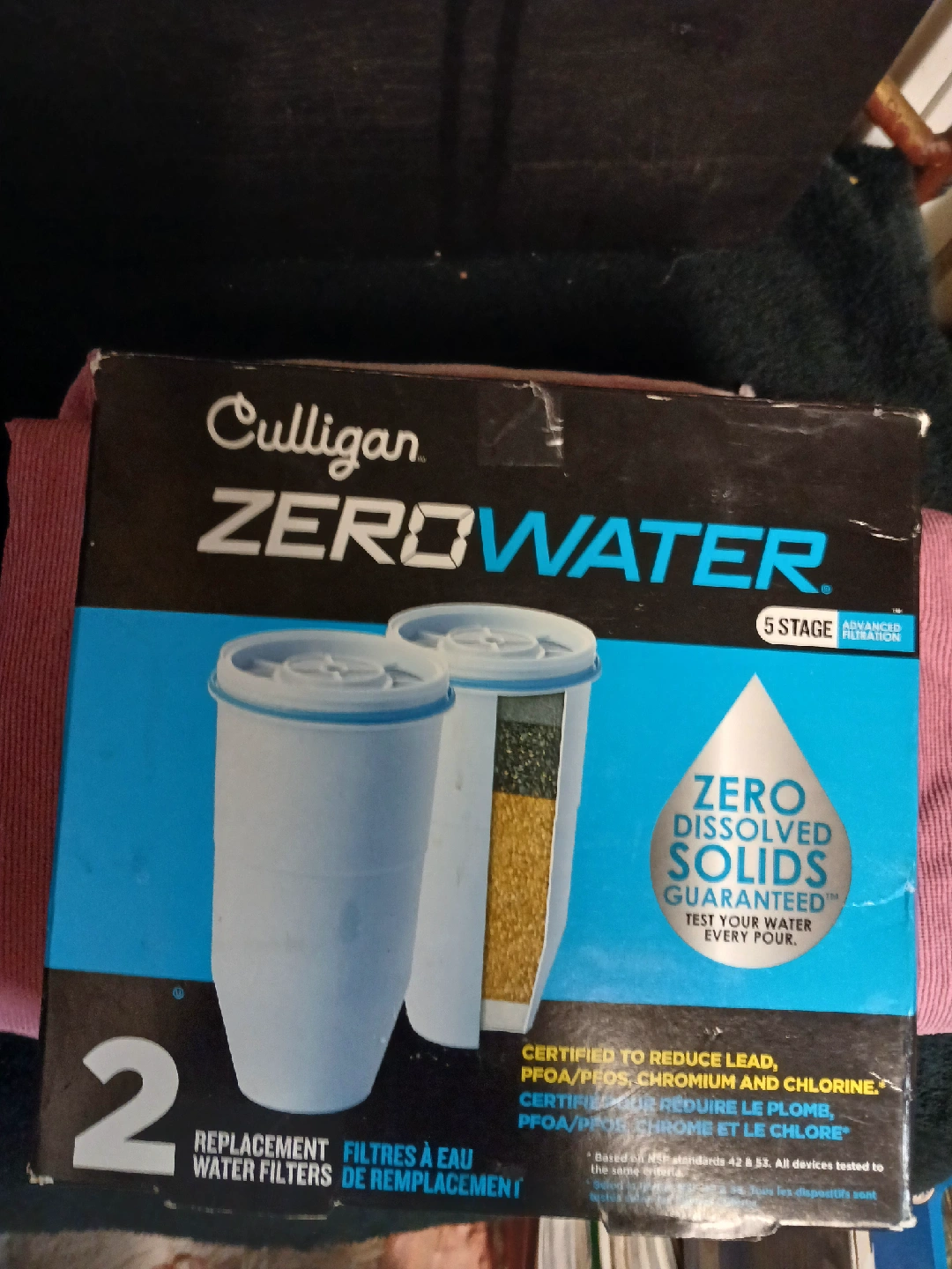 10Selling a two-pack of Culligan ZeroWater replacement filters! These 5-stage advanced filtration filters are designed to reduce lead, PFOA/PFOS, chromium, and chlorine, ensuring your water is as pure as possible. Zero Dissolved Solids Guaranteed! Box included