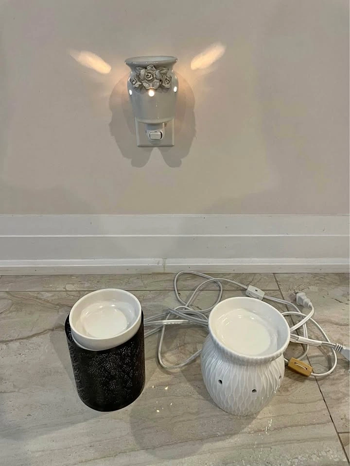 Create a cozy and inviting atmosphere in your home with this Scentsy wax warmer. • Gently warms scented wax to fill your space with long-lasting fragrance • Safer alternative to candles or plug-in air fresheners – no flame, no soot, no harmful sprays • Perfect for adding ambience and a welcoming touch to any room Enjoy a fresh-smelling home that feels warm and relaxing—all with the simple elegance of a Scentsy warmer. Purchase all 3 for $35 or: Plugged Scentsy: $10 Brown Scentsy: $15 White Scentsy: $15 No guarantee of how much life is left in the lightbulb.
