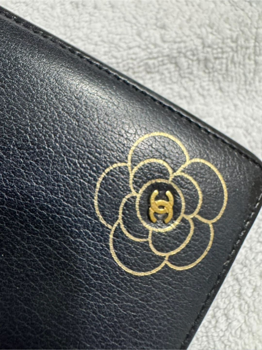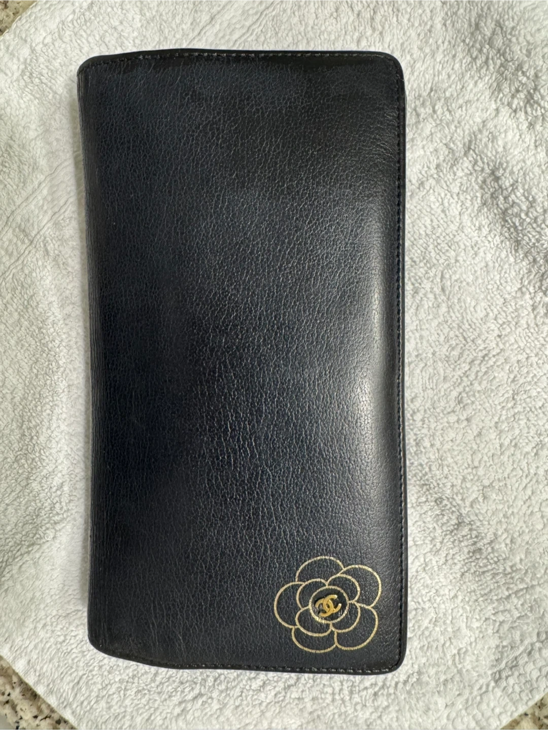 CHANEL Camellia Long wallet Leather Black Authentic