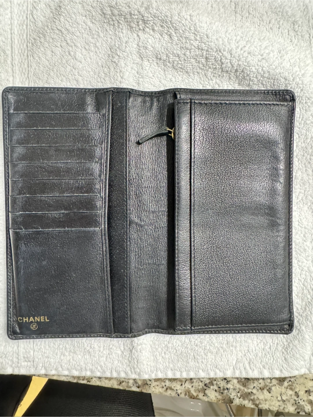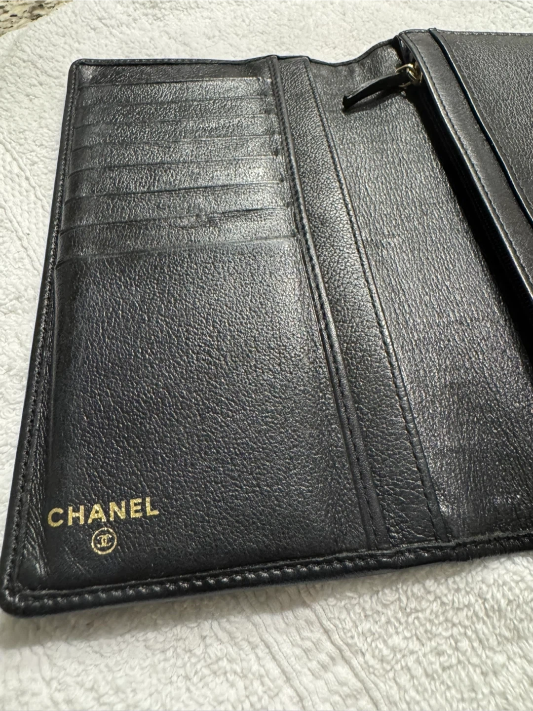 Selling a Chanel black leather wallet. It has minimal signs of use, very good condition and has lots of life left! Perfect for keeping your cards and cash organized. Misplaced the dust bag however I do have the box. This one is timeless and in excellent condition! Barely used… can give another dust bag if the need is there :)