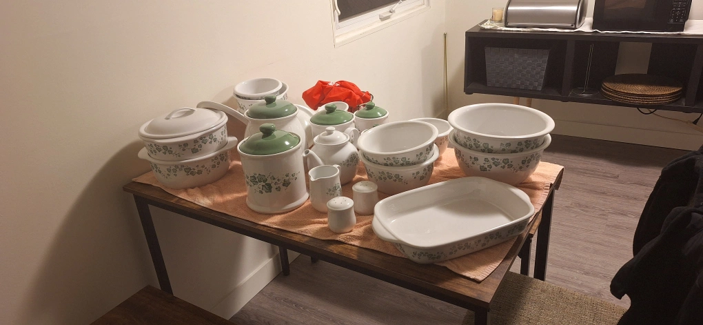 Selling a Corelle Lily Garden dinnerware set! It includes a variety of dishes, bowls, and serving pieces, all with the classic Lily Garden pattern. This set is perfect for everyday use or special occasions. The pieces are lightweight and durable.