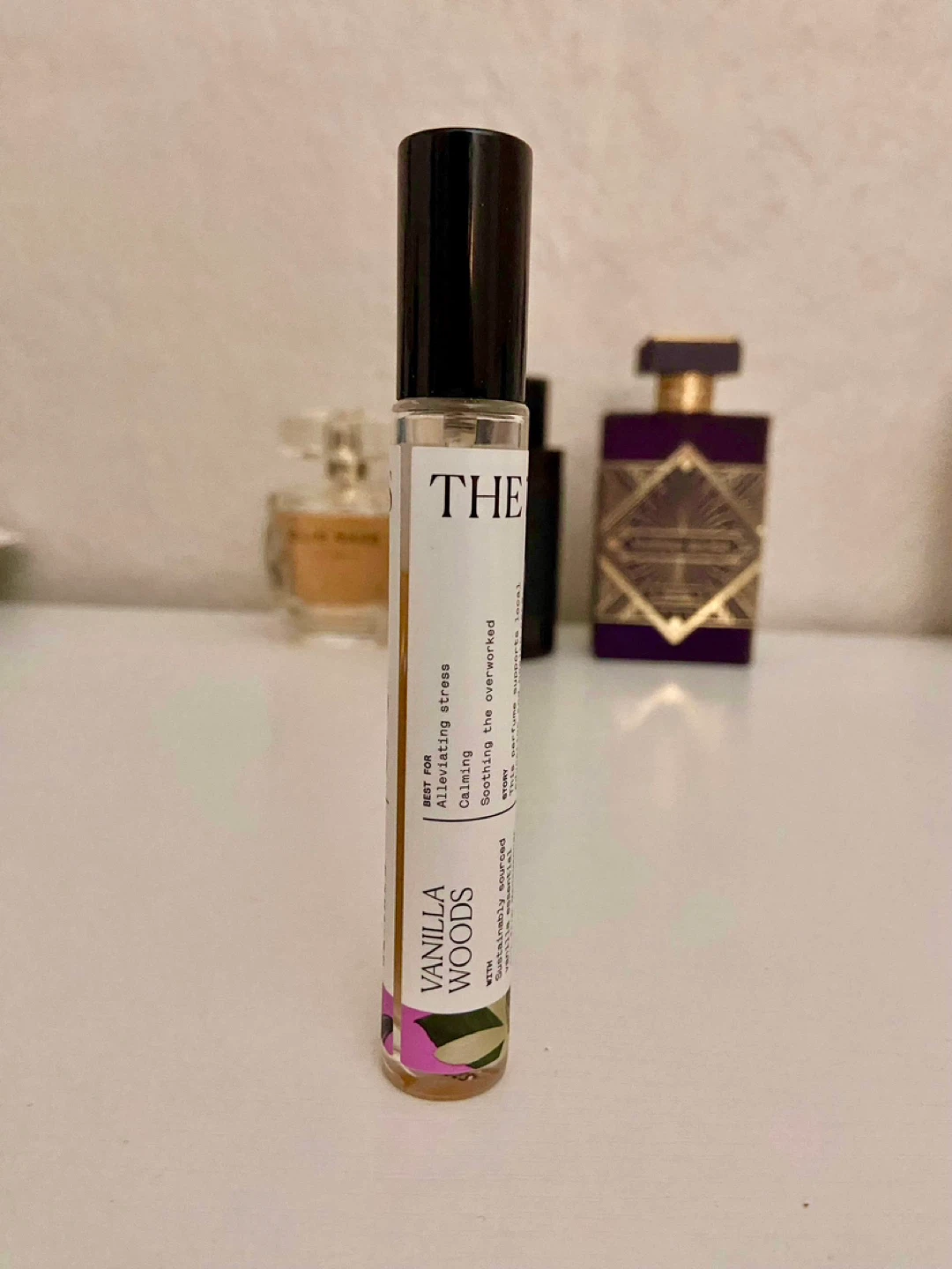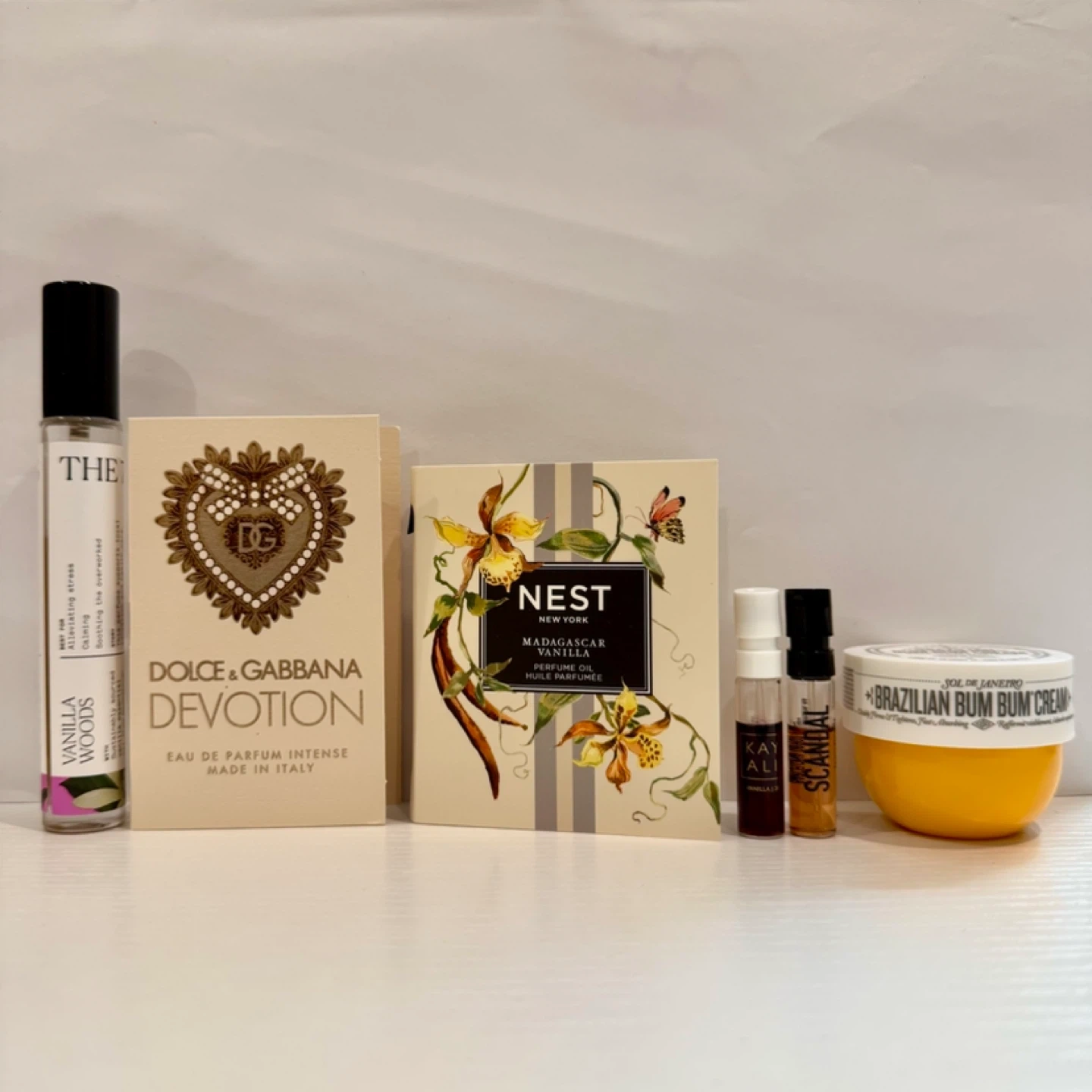 Bundle includes a travel size 7 Virtues Vanilla Woods edp with premium samples: