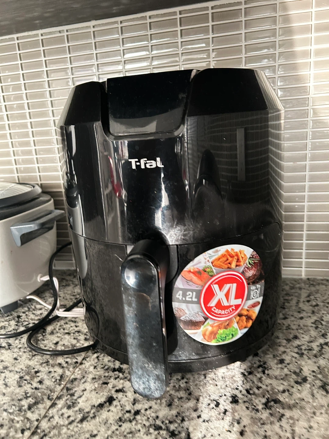 Selling a T-fal XL air fryer in black. It has a 4.2L capacity, perfect for making your favourite meals! It's in good condition and ready for a new home. Selling a T-fal XL air fryer with a 4.2L capacity. The wire has a minor burn