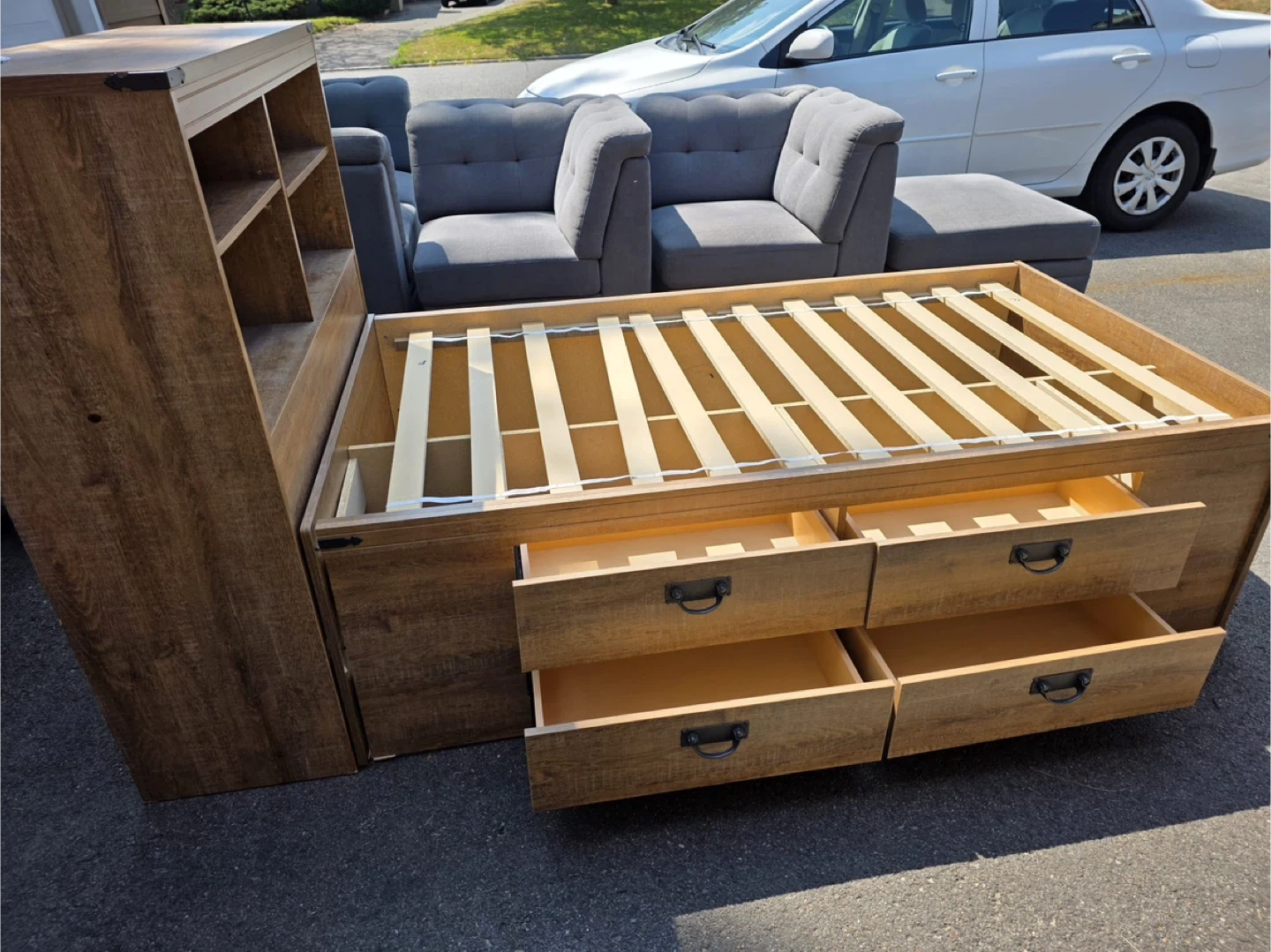 Wooden Twin Bed Frame with Headboard