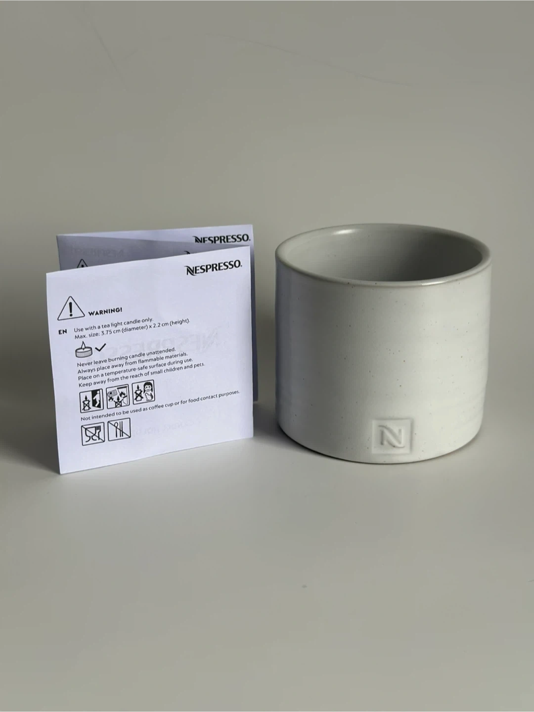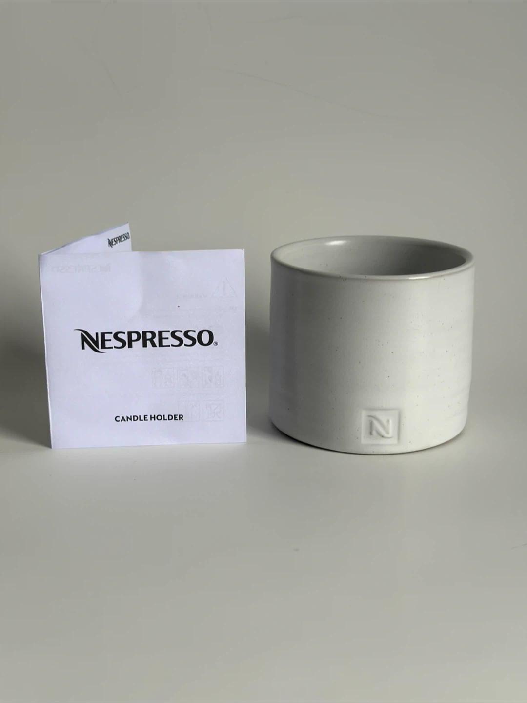 564Brand new with original box. Selling a Nespresso candle holder. It's in great condition and ready to add a touch of warmth to your space! Use with a tea light candle only. The size is 3.75 cm (diameter) x 2.2 cm (height).