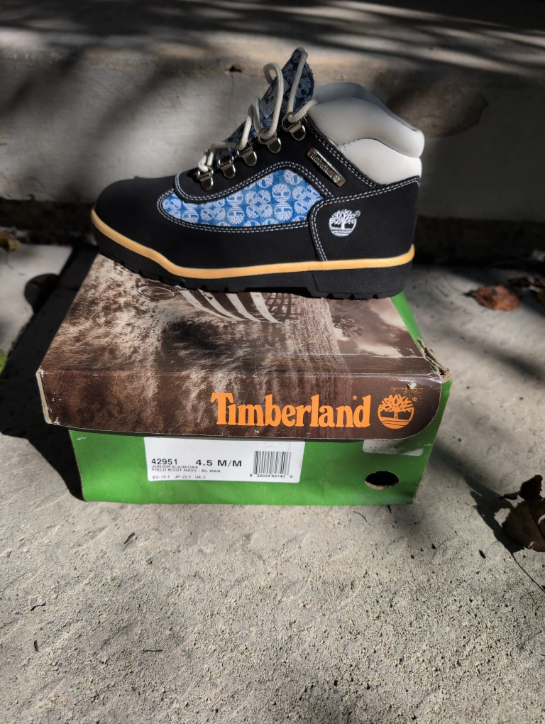 Selling a pair of Timberland Field Boots in size 4.5. Navy Blue. They come with the original box! Vintage