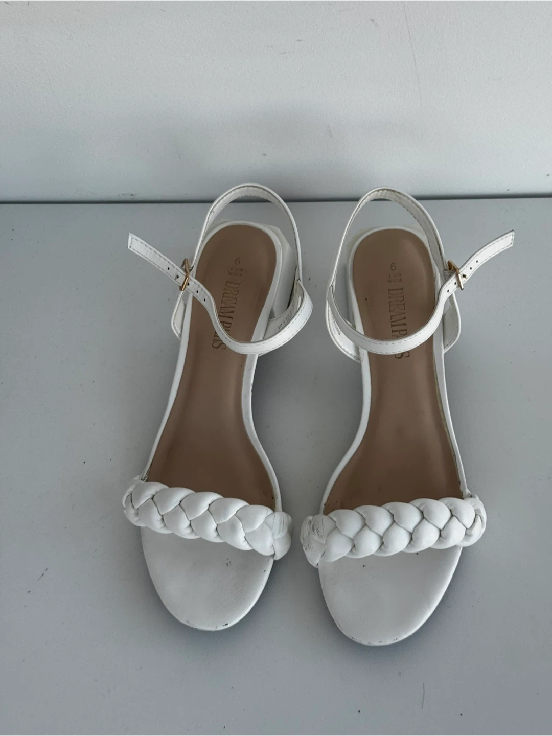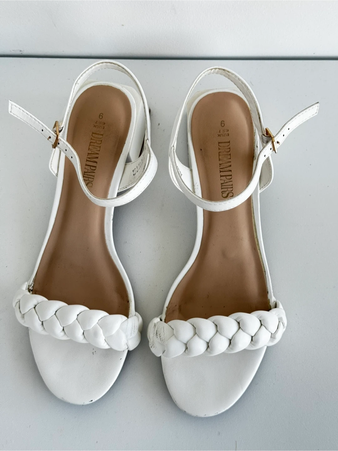 Selling a pair of Dream Pairs sandals in white! They feature a cute braided design on the front strap and are in great condition. The size is a women's 9
