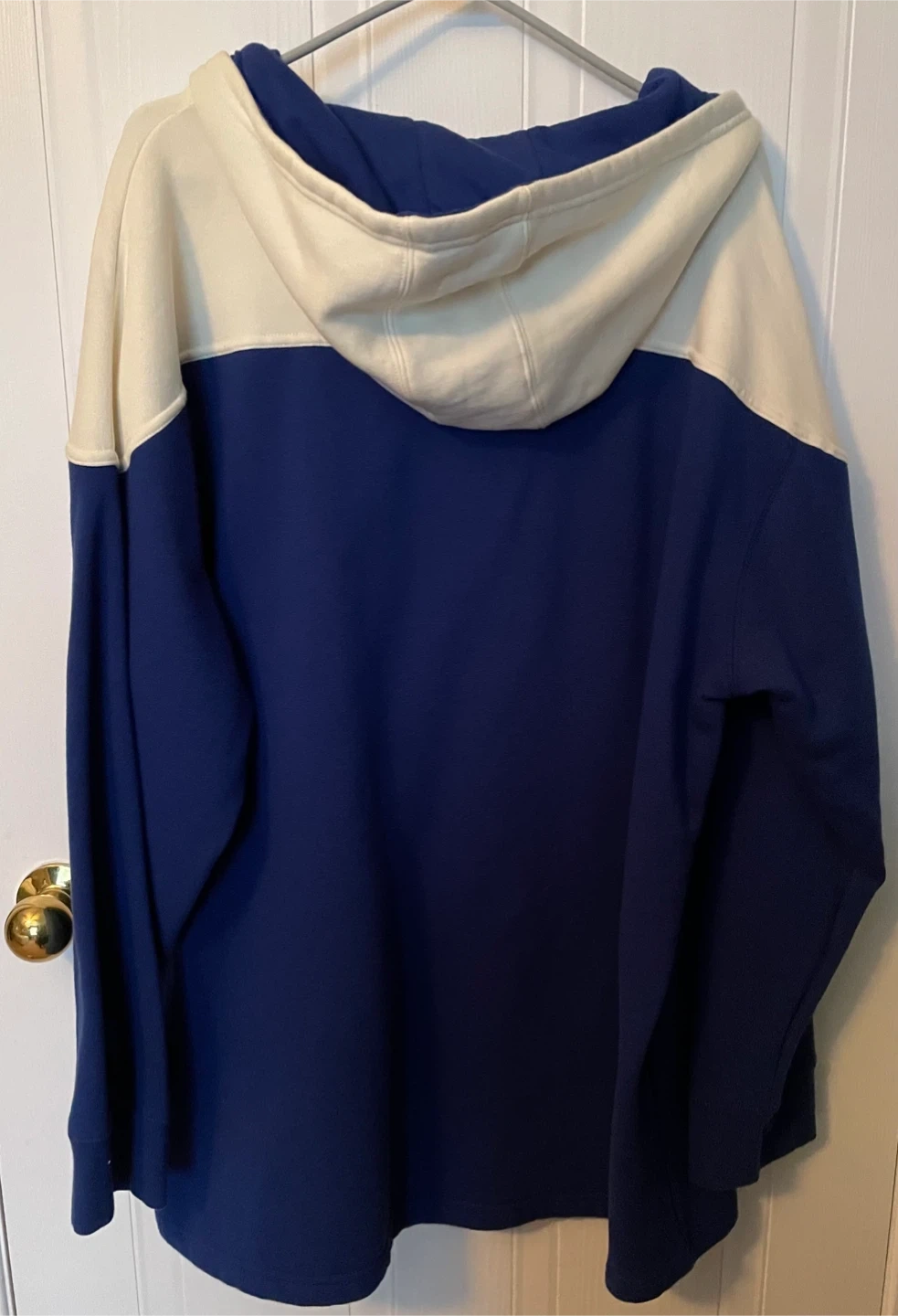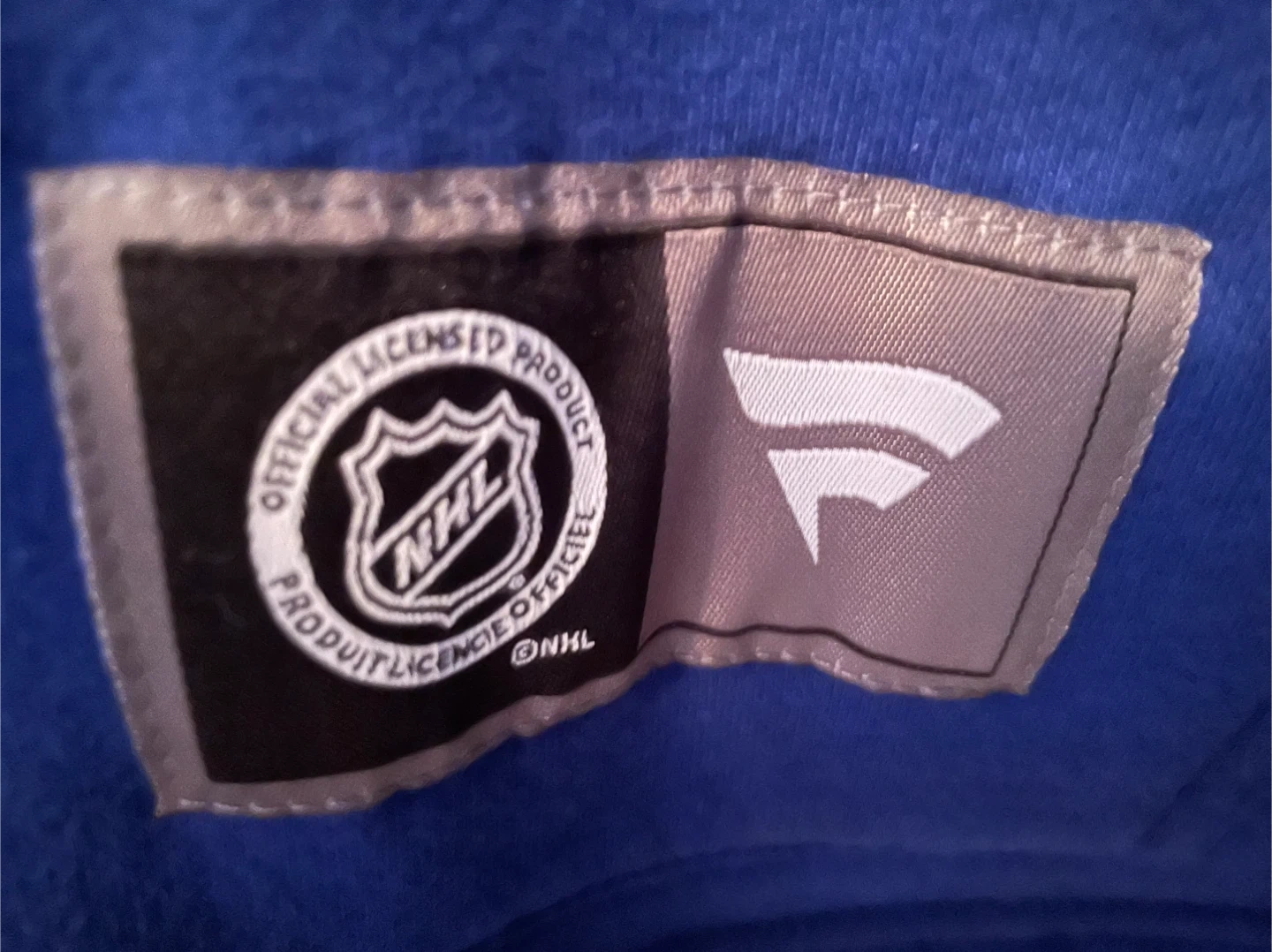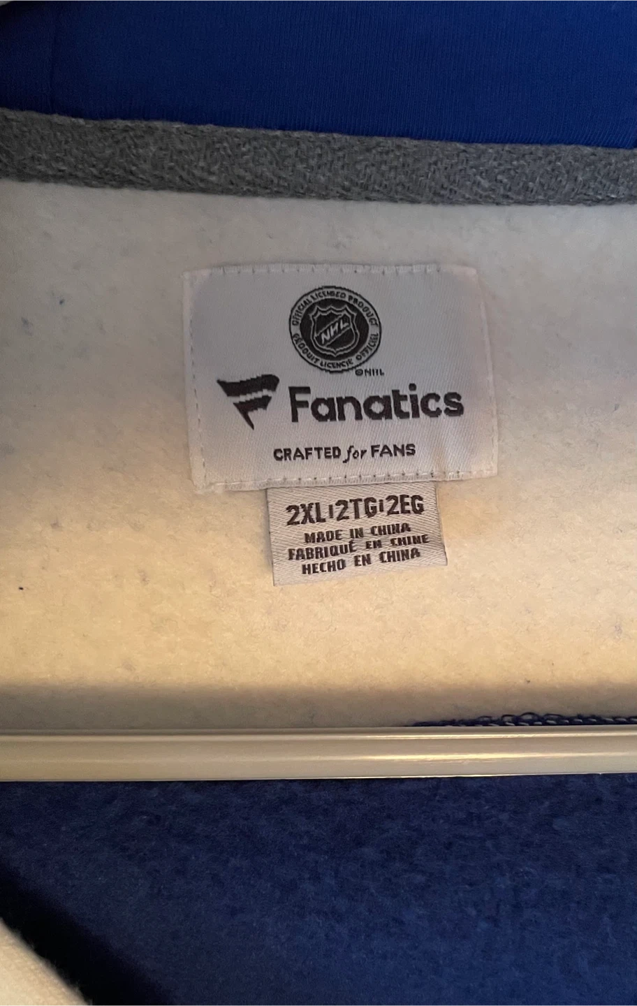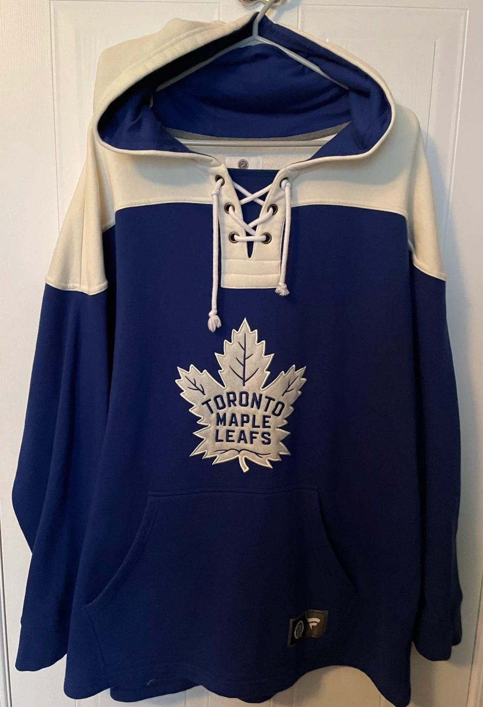 Selling a Fanatics Toronto Maple Leafs hoodie in size 2XL. It's a blue and white colour block design. Perfect for showing your team spirit!