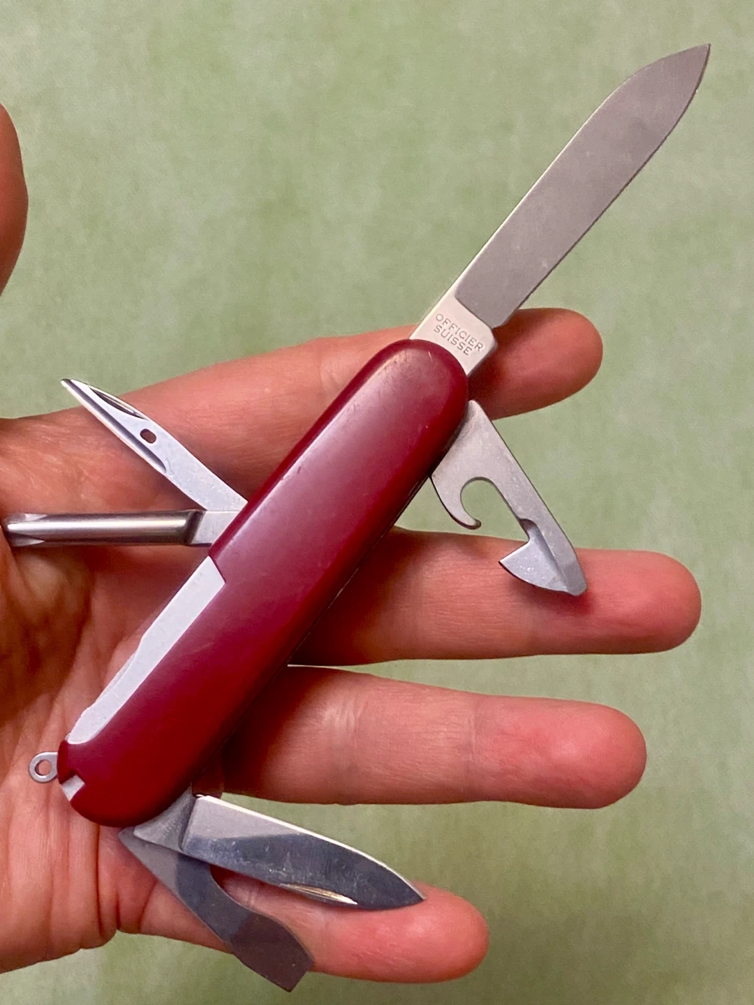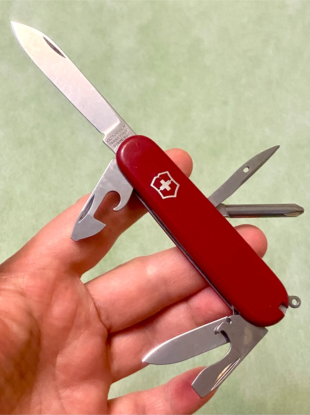 Selling a classic Victorinox Swiss Army knife. It's in great shape and ready for your next adventure! Features the iconic red handle and multiple useful tools. "VICTORINOX SWISS MADE STAINLESS" is engraved on the blade.