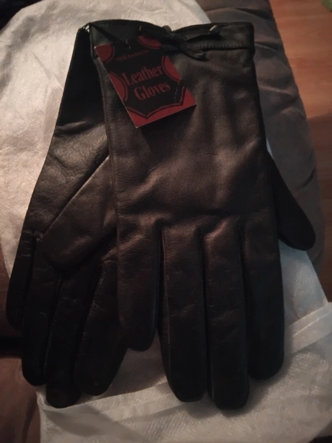 These are brand new black leather gloves from Aria. They are made from genuine leather. Keep your hands warm this winter!