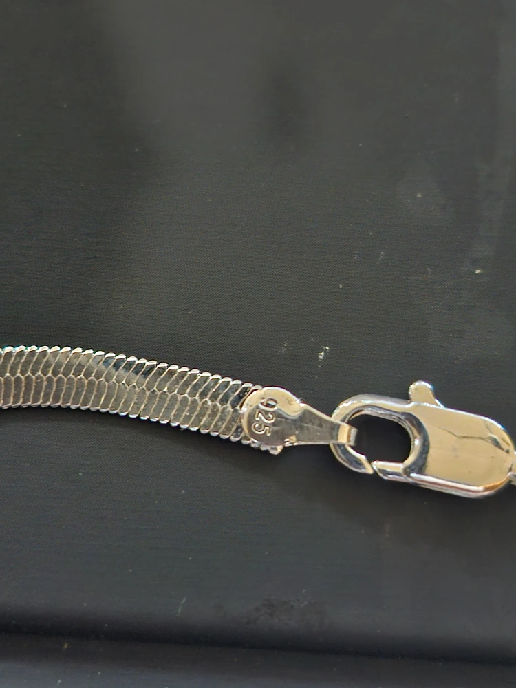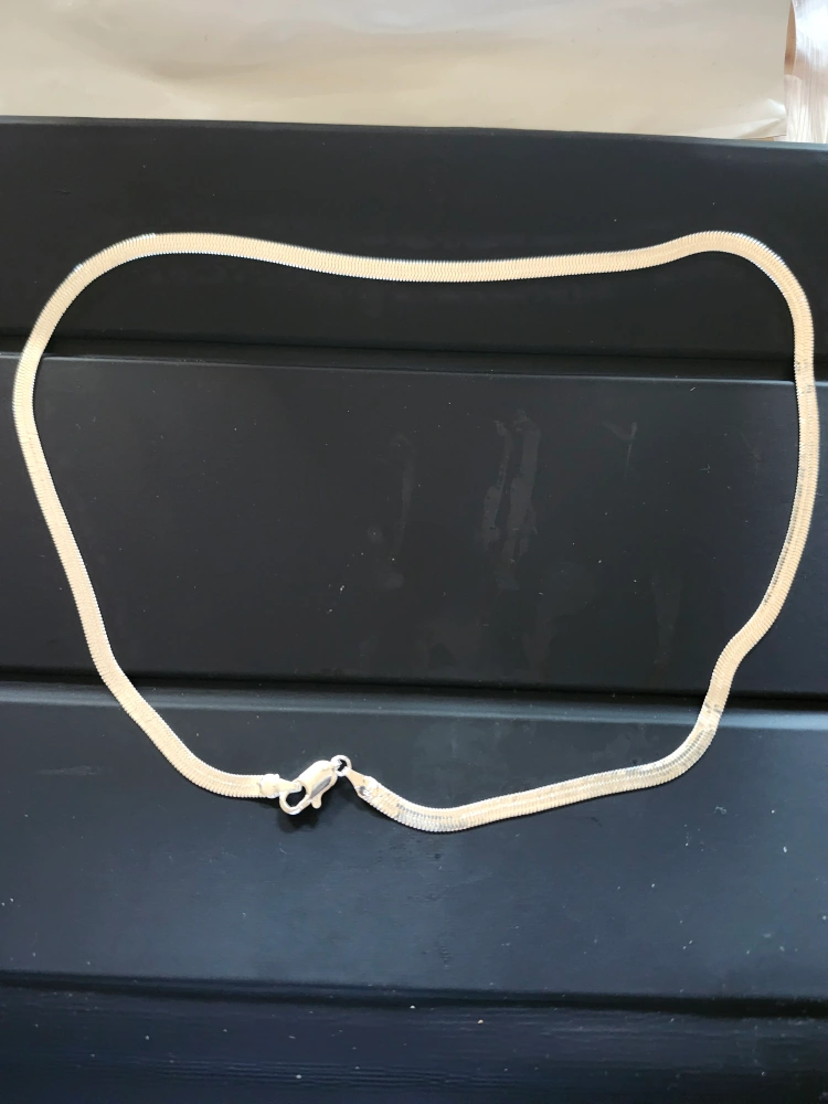 Selling a sterling silver 925 herringbone chain necklace. It's in new condition and ready to wear! 19 inches long