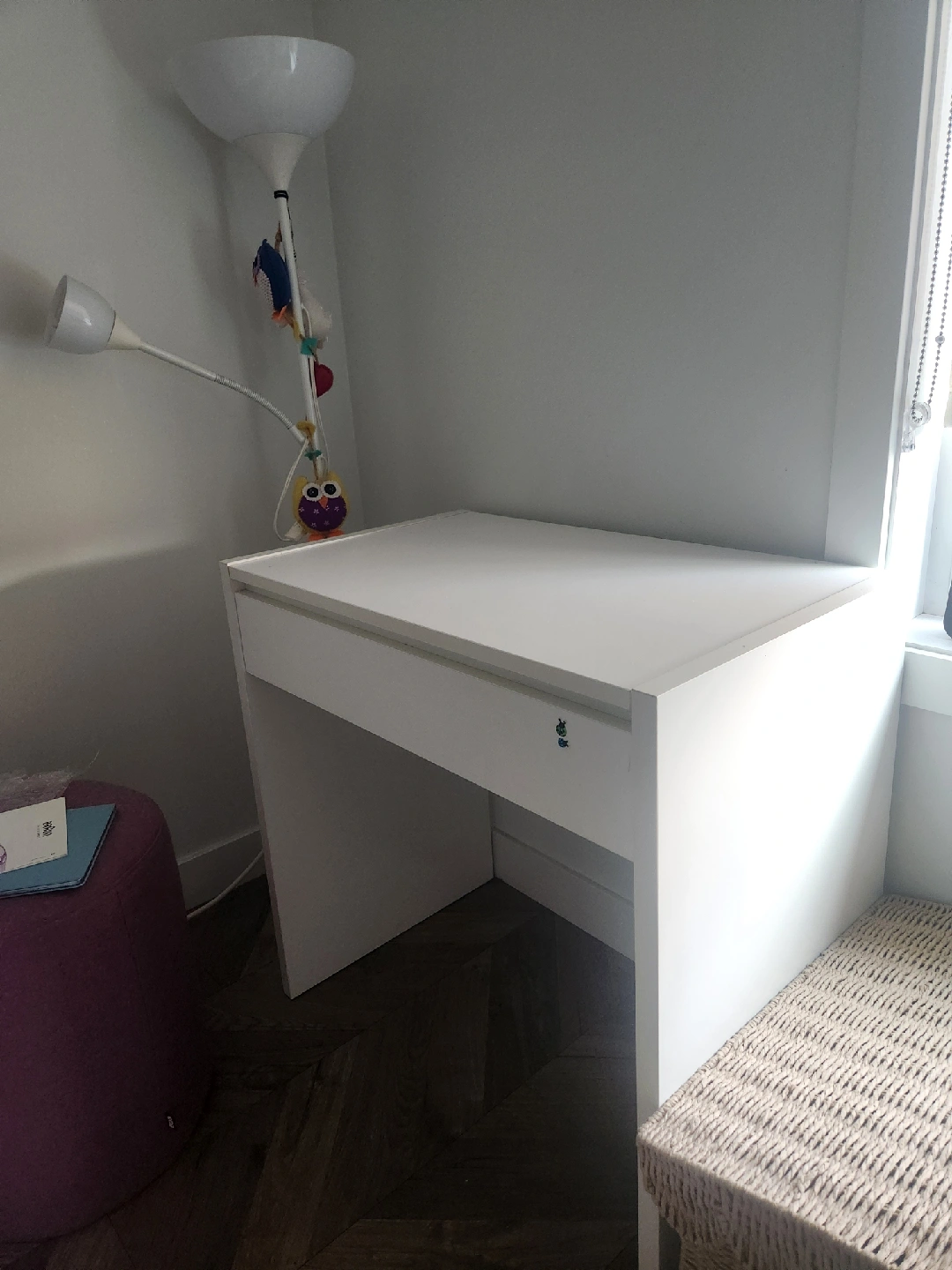 Selling a lovely white vanity desk! It features a flip-top mirror and built-in storage compartments, perfect for keeping your makeup and accessories organized. It's in great condition and would be a wonderful addition to any bedroom or dressing area