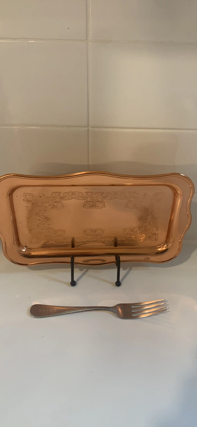 Add a touch of vintage charm to your home with this Mid-Century charming Coppercraft Guild Relish tray. A lovely embossed floral pattern. This rectangular tray is perfect for serving and / or displaying or simply adding a bit of retro flair to your decor. Brand: Coppercraft Guild-Made in Staunton Massachusetts. 100% PURE Copper. If this ad is still up, it's still available!