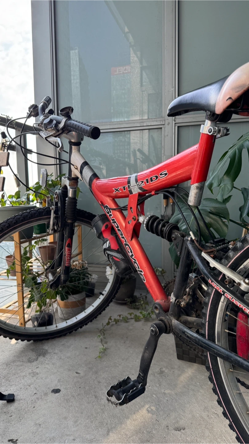 Selling my XTI-21DS bike with dual suspension. It's red and black. Perfect for getting around town or hitting some trails
