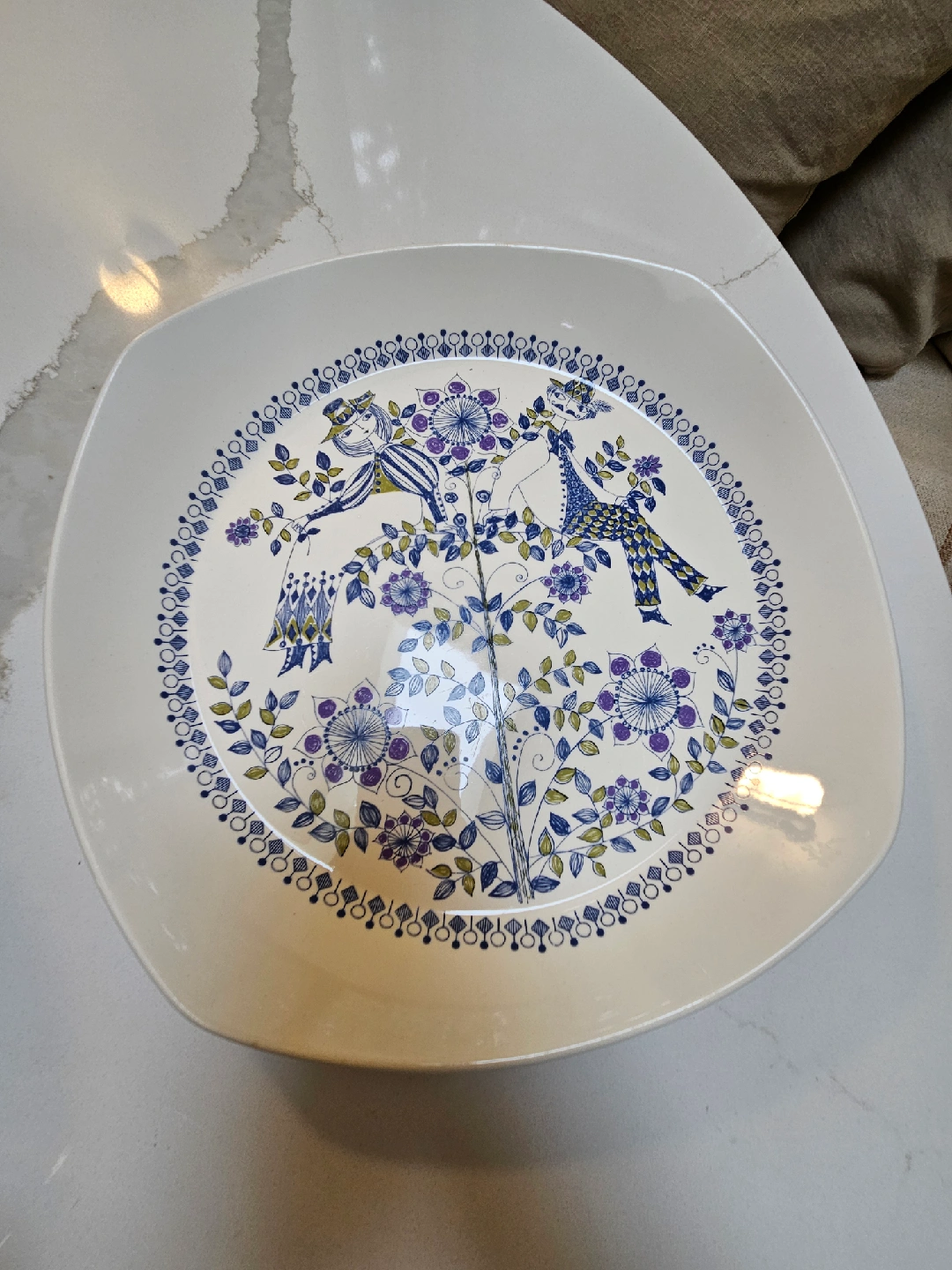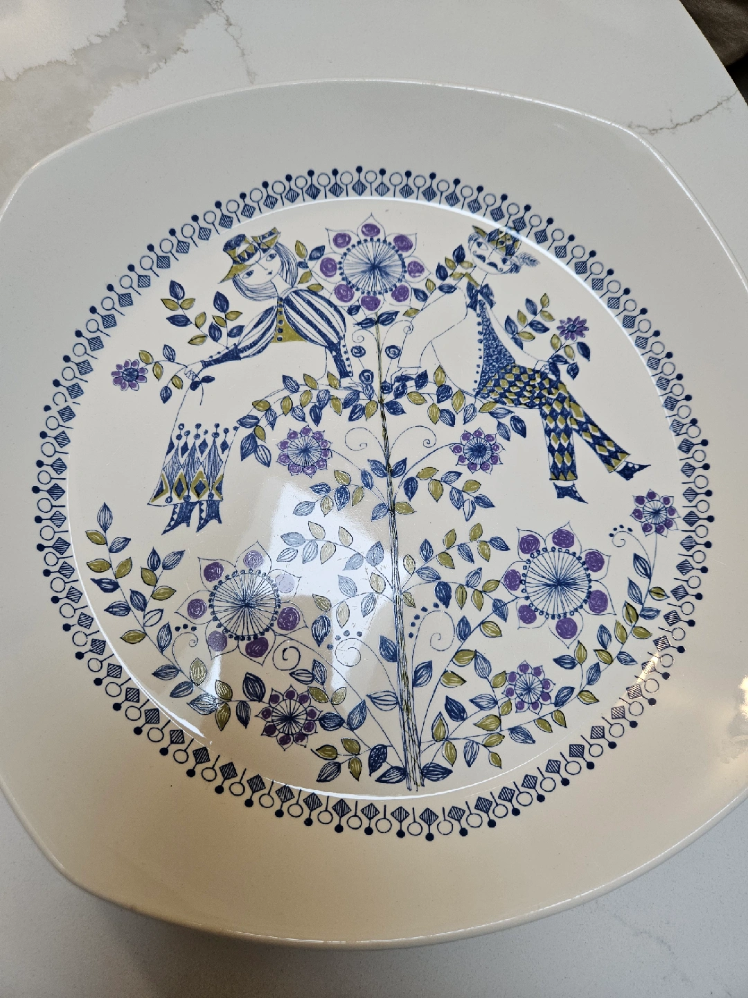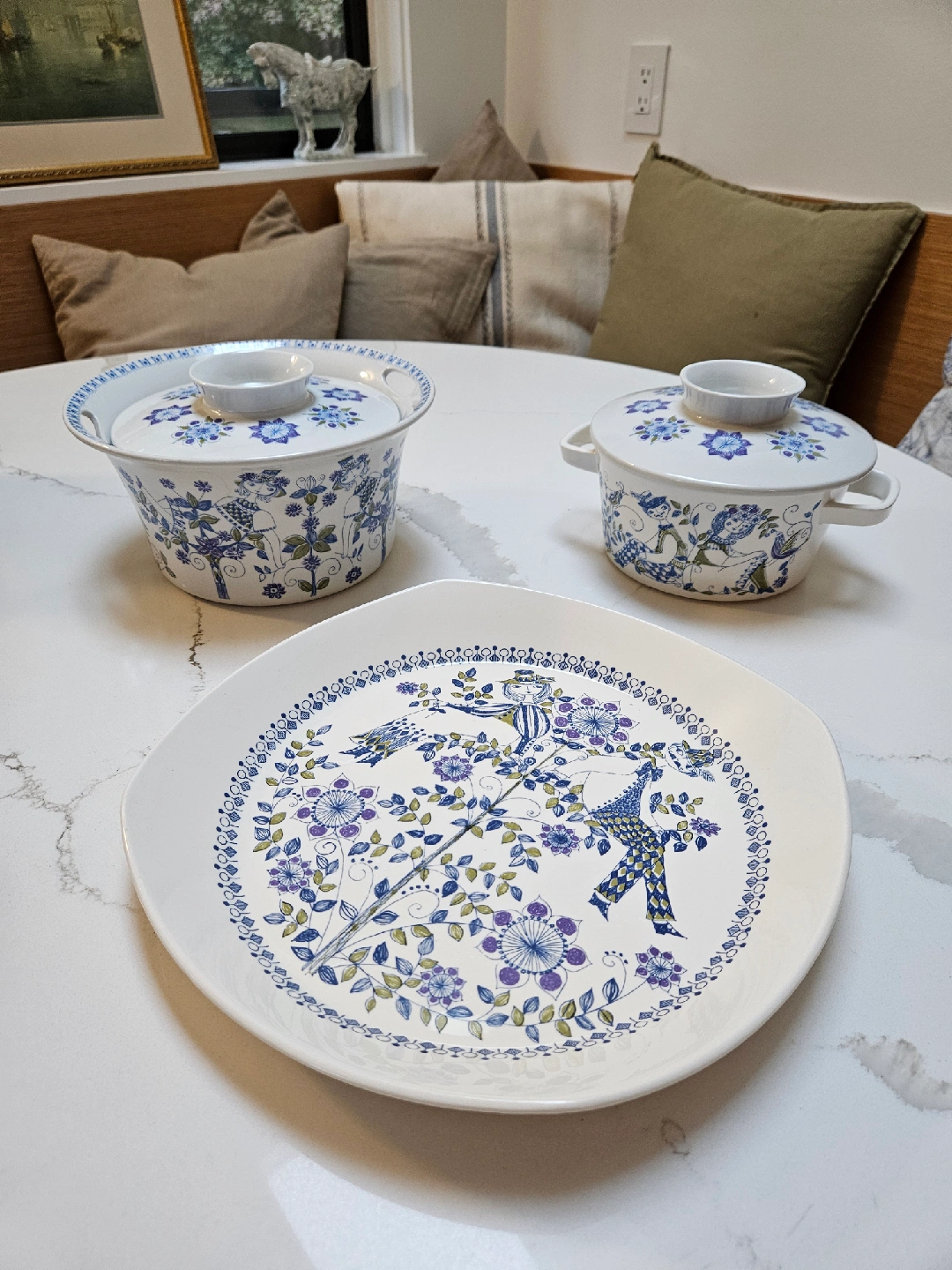 Selling a lovely set of Turi Design Lotte serving dishes, made in Norway. The set includes a plate ($50) and two covered serving dishes ($60 each), all featuring a charming, hand-painted silkscreen design. Perfect for adding a touch of vintage Scandinavian style to your table! Vintage Figgjo Flint Norway Turi Lotte Design White and Blue Large Platter. $50. Good Condition. See my other listings for photos of the serving dishes.
