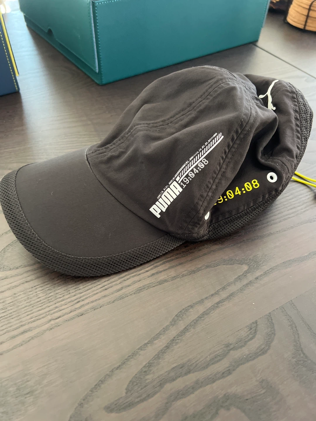 Selling a Puma running cap in black. It's in great condition and perfect for your runs or outdoor activities. The size is adult.
