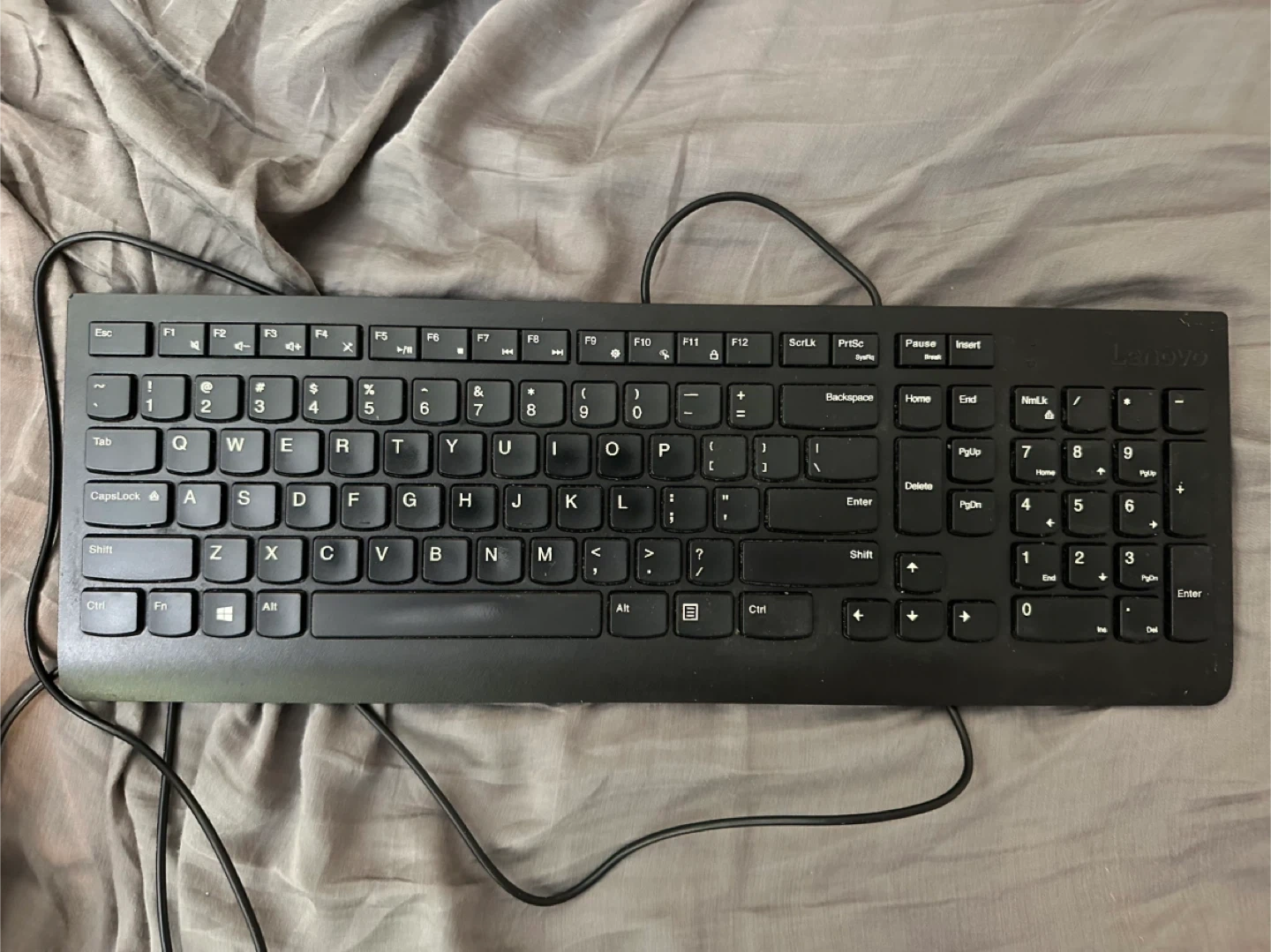 Selling a used Lenovo black wired keyboard. It's in good working condition and ready for a new home! Perfect for everyday use or as a spare keyboard for your computer