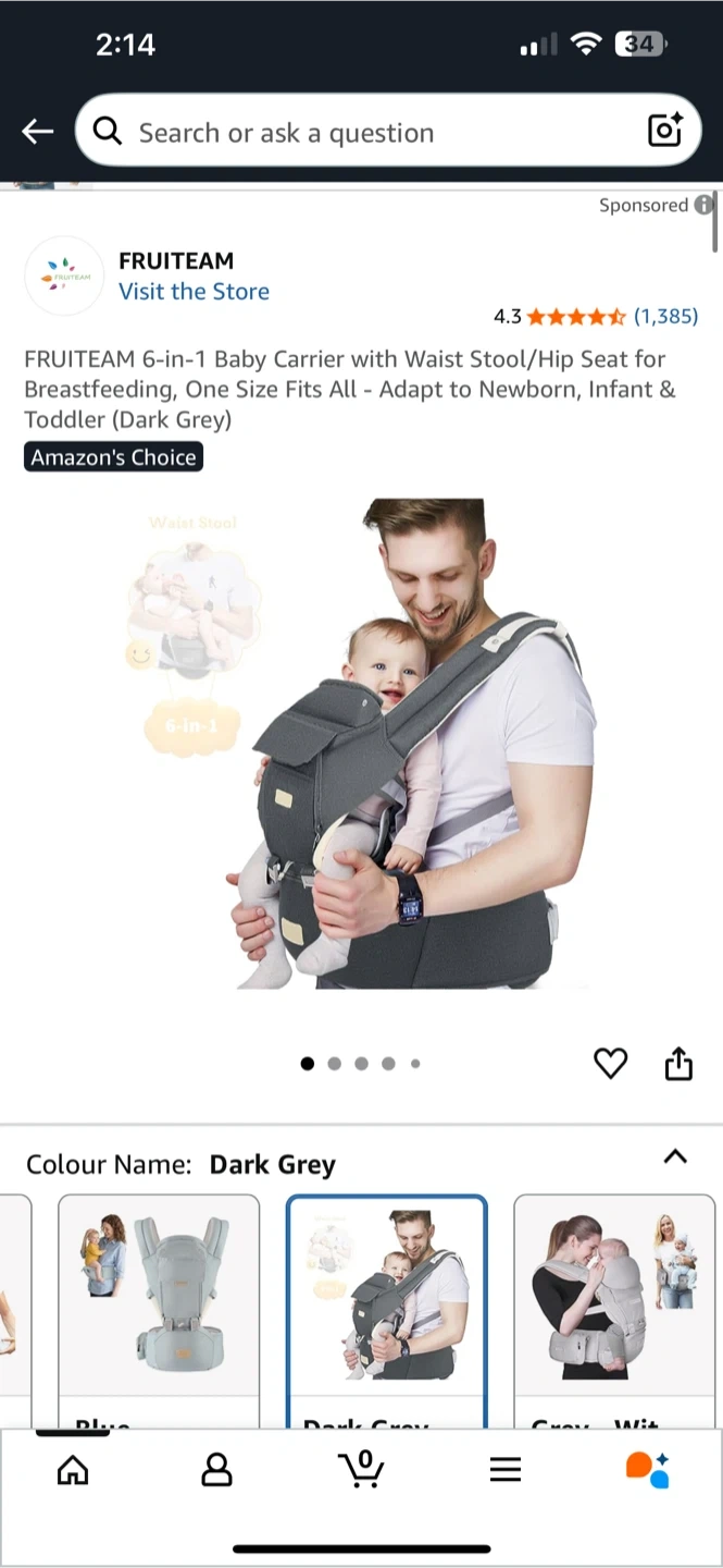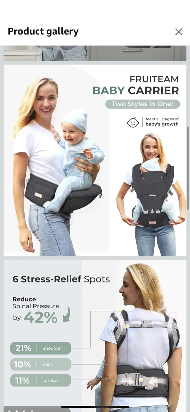 Selling a brand new FRUITEAM 6-in-1 baby carrier in dark grey! This carrier is designed to adapt from newborn to toddler. It has a waist stool/hip seat for breastfeeding, making it super versatile and convenient. Comes with the instruction manual and manufacturer's contact information. Brand new in package with tags.