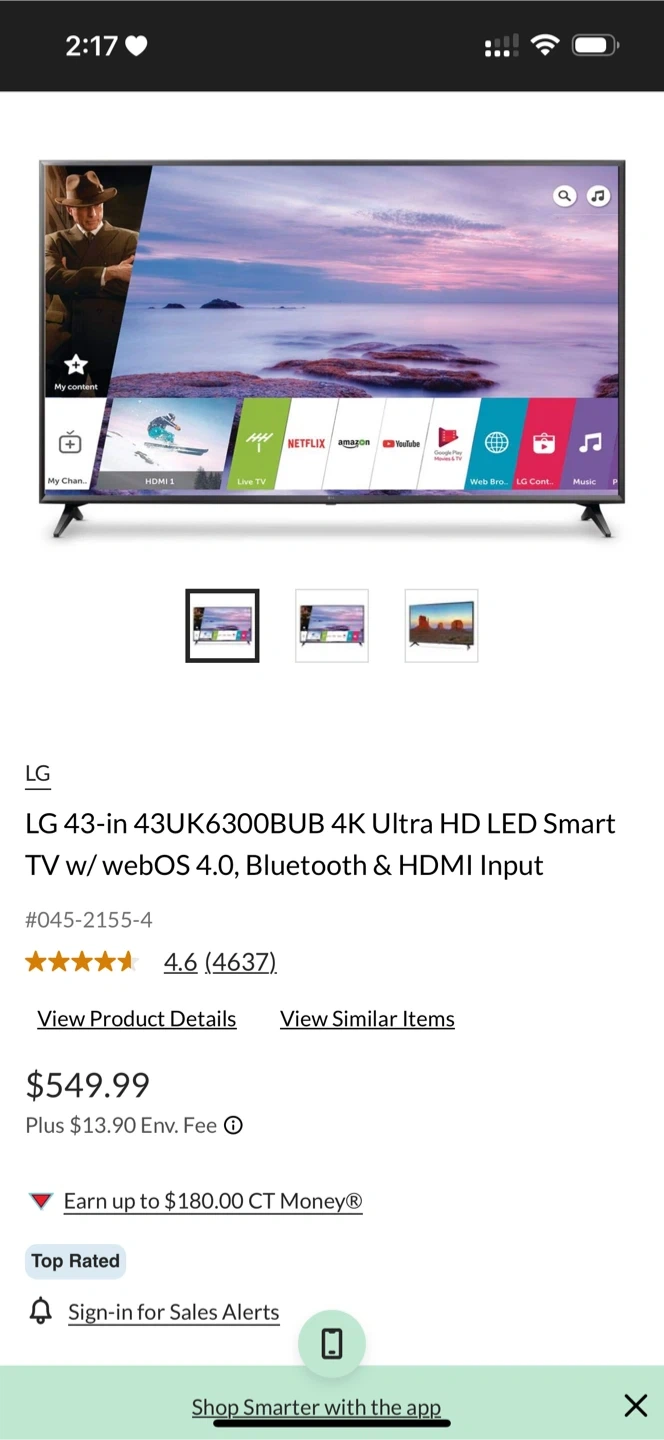 Selling an LG 43-inch 4K UHD LED Smart TV. It comes with webOS 4.0, Bluetooth, and HDMI input. It was originally bought for $549.99.