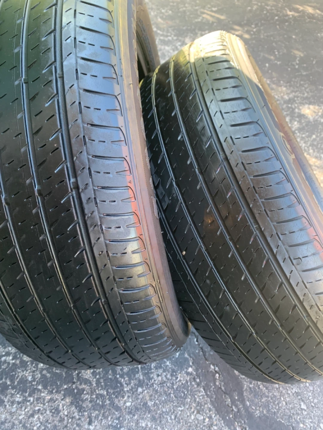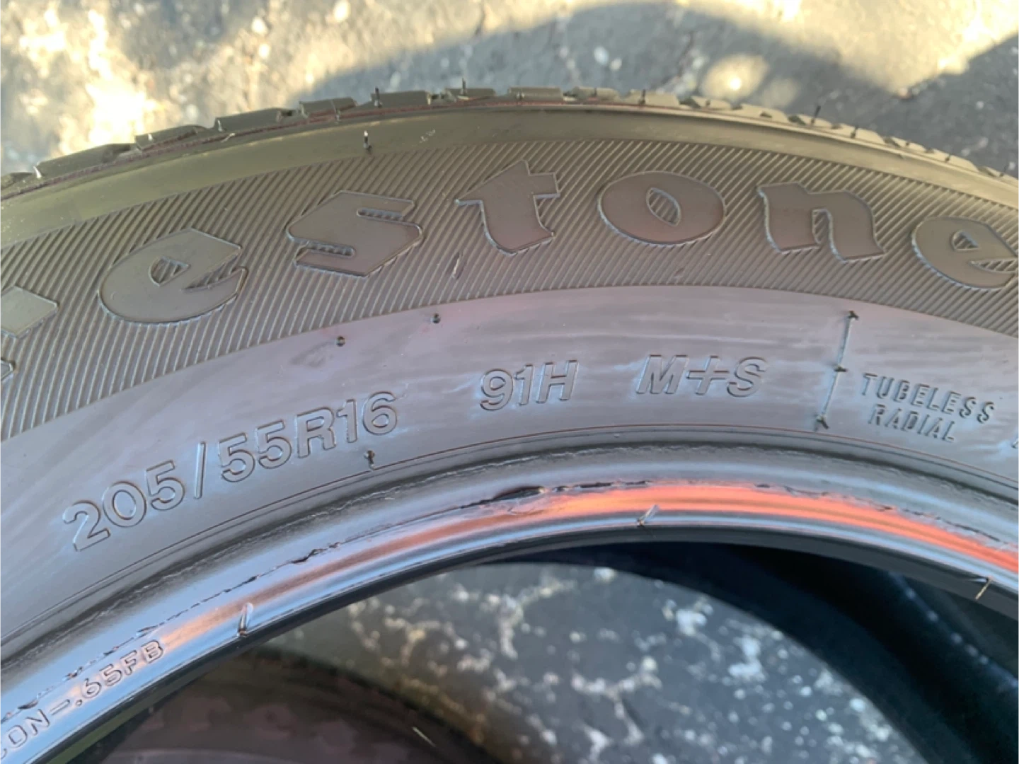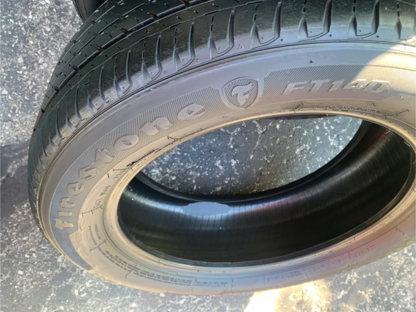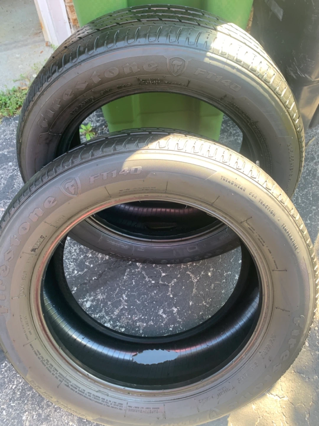 one complete set of Firestone FT140 all season tires. tread is low. Condition ok. Must pick up by today. $60/set