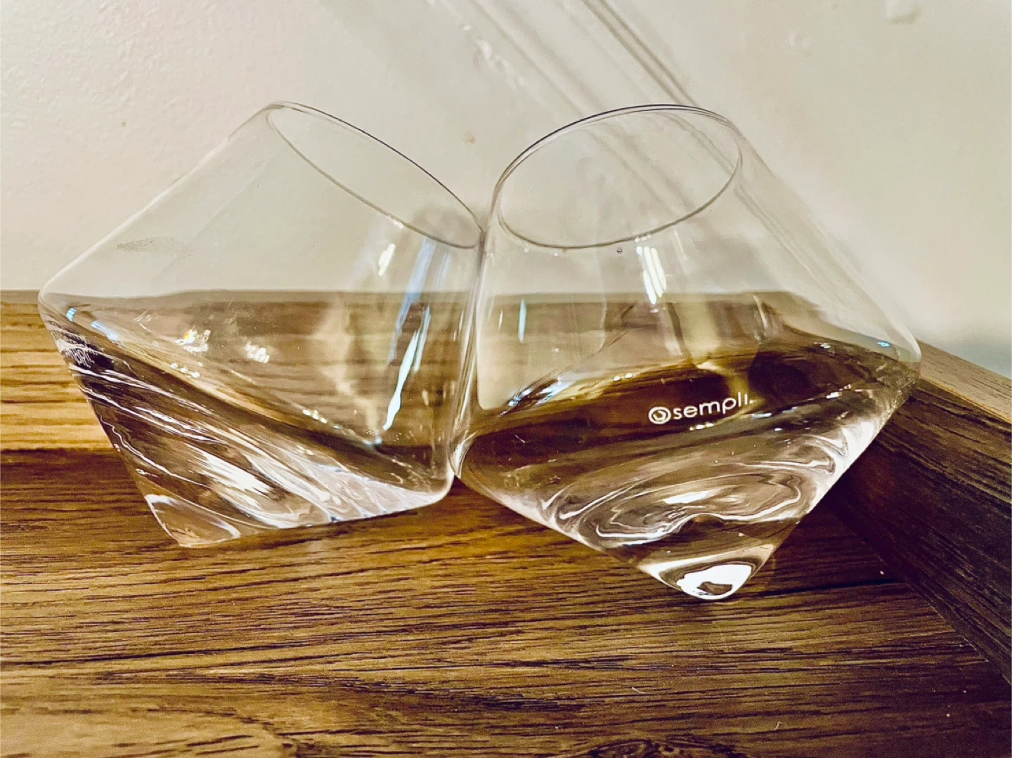 Selling a set of two Sempli Cupa-Rocks whiskey glasses! These hand-blown crystal glasses are designed for swirling aeration, perfect for enjoying scotch, bourbon, or brandy. They are ultra clear and each glass is 9.25 oz. Originally purchased online for $121.33