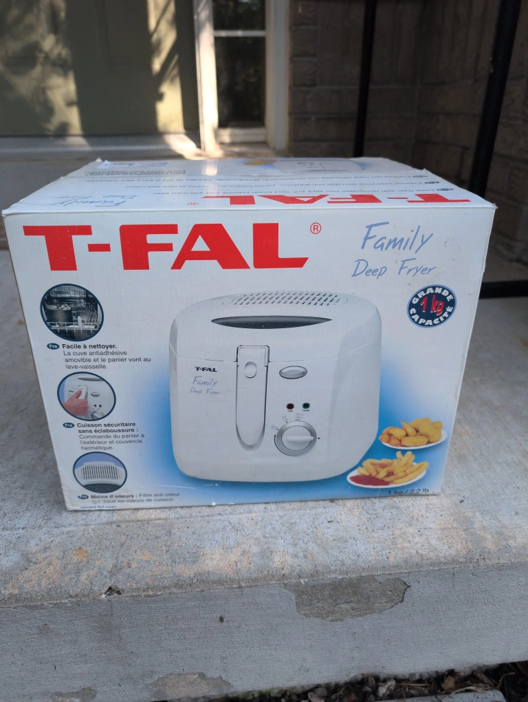 Selling a T-Fal Family Deep Fryer! It's easy to clean with a removable non-stick bowl and dishwasher-safe parts. It also features safe cooking with no splashes thanks to its hermetic lid and exterior bowl. There's also a filter to reduce cooking odours. Brand new in box.