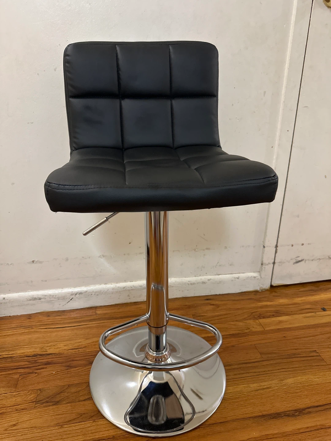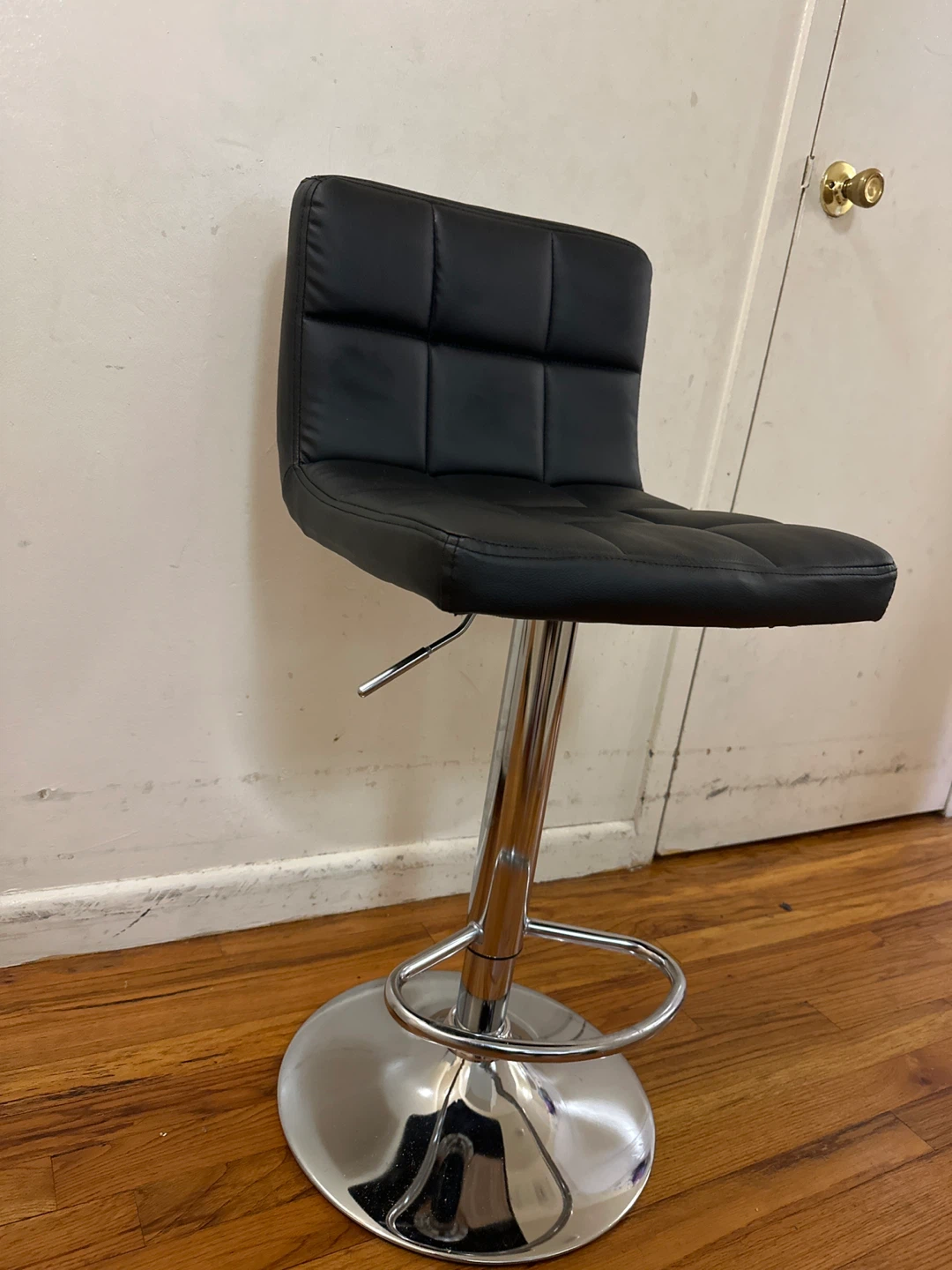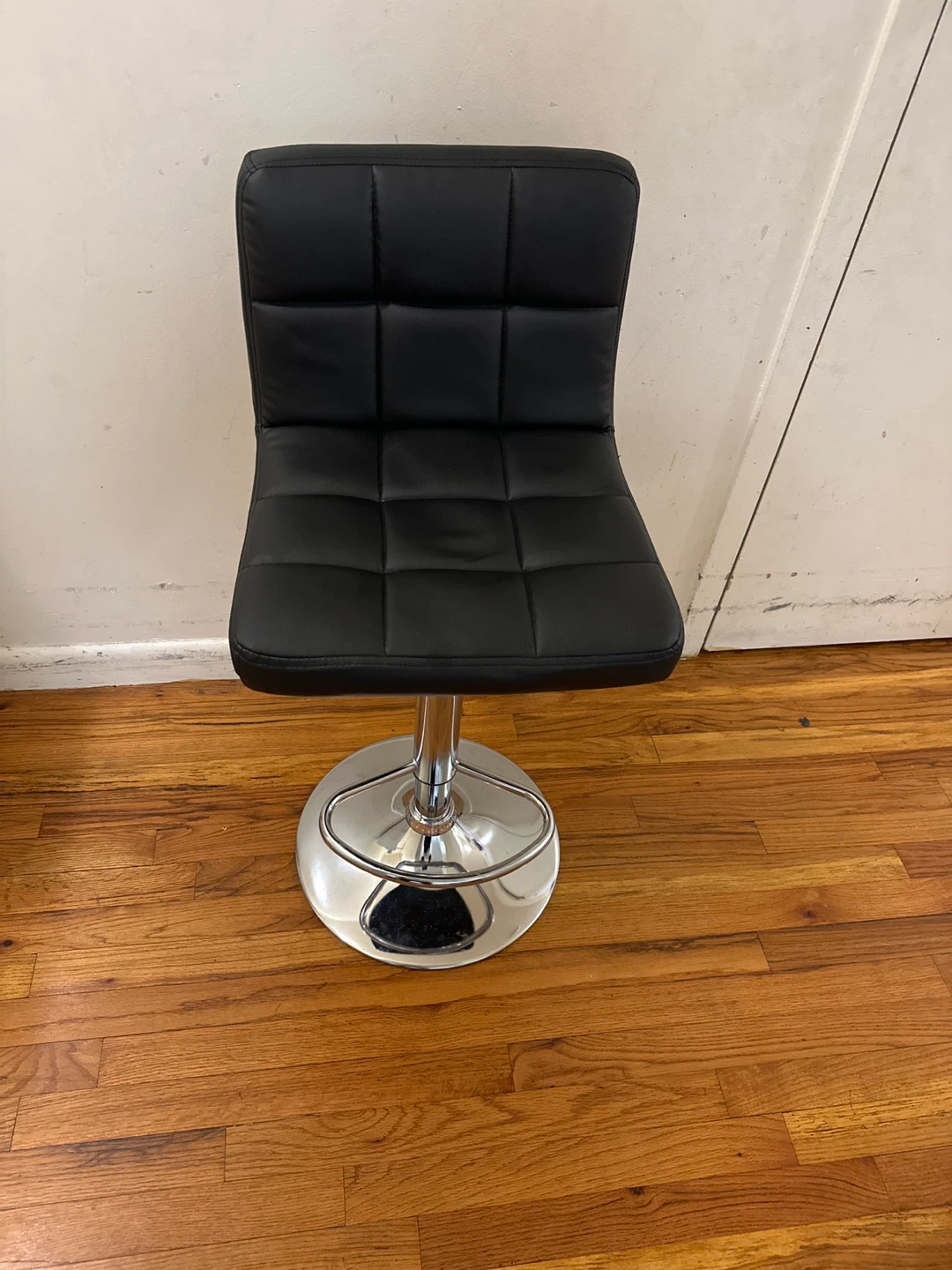 Selling a black swivel bar stool. It's in great condition and would look great in any kitchen or bar area. The stool is adjustable in height and has a footrest for added comfort