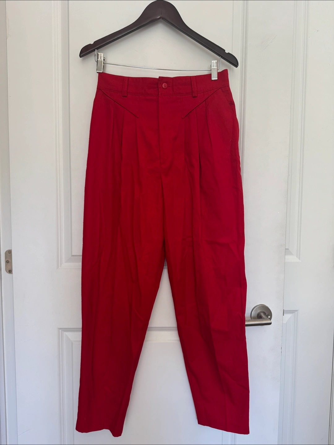 Brighten up your wardrobe with these vibrant red trousers from Editions Lifestyle! They are a size 11, though note that this is vintage sizing so I would describe it as closer to a small or a size 6 in today’s sizing, and in great condition. Perfect for adding a pop of colour to any outfit!