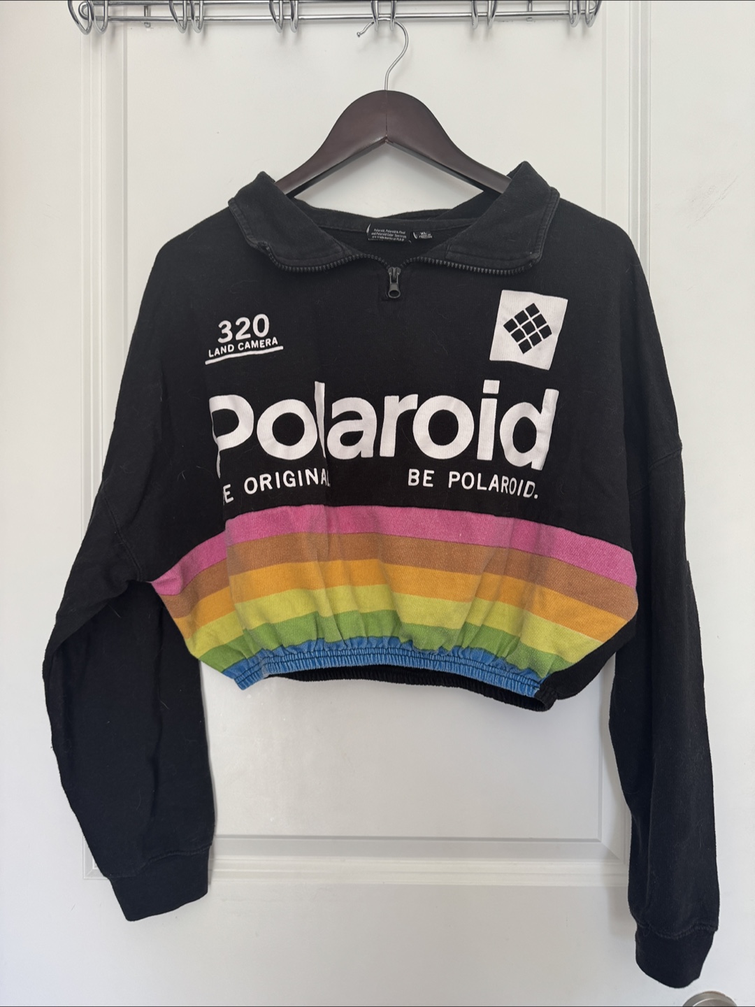Cute Polaroid cropped quarter zip with a rainbow stripe design! It's a size XL, but I believe this is children’s sizing - it’s closer to a women’s size XS or S, and in great condition.