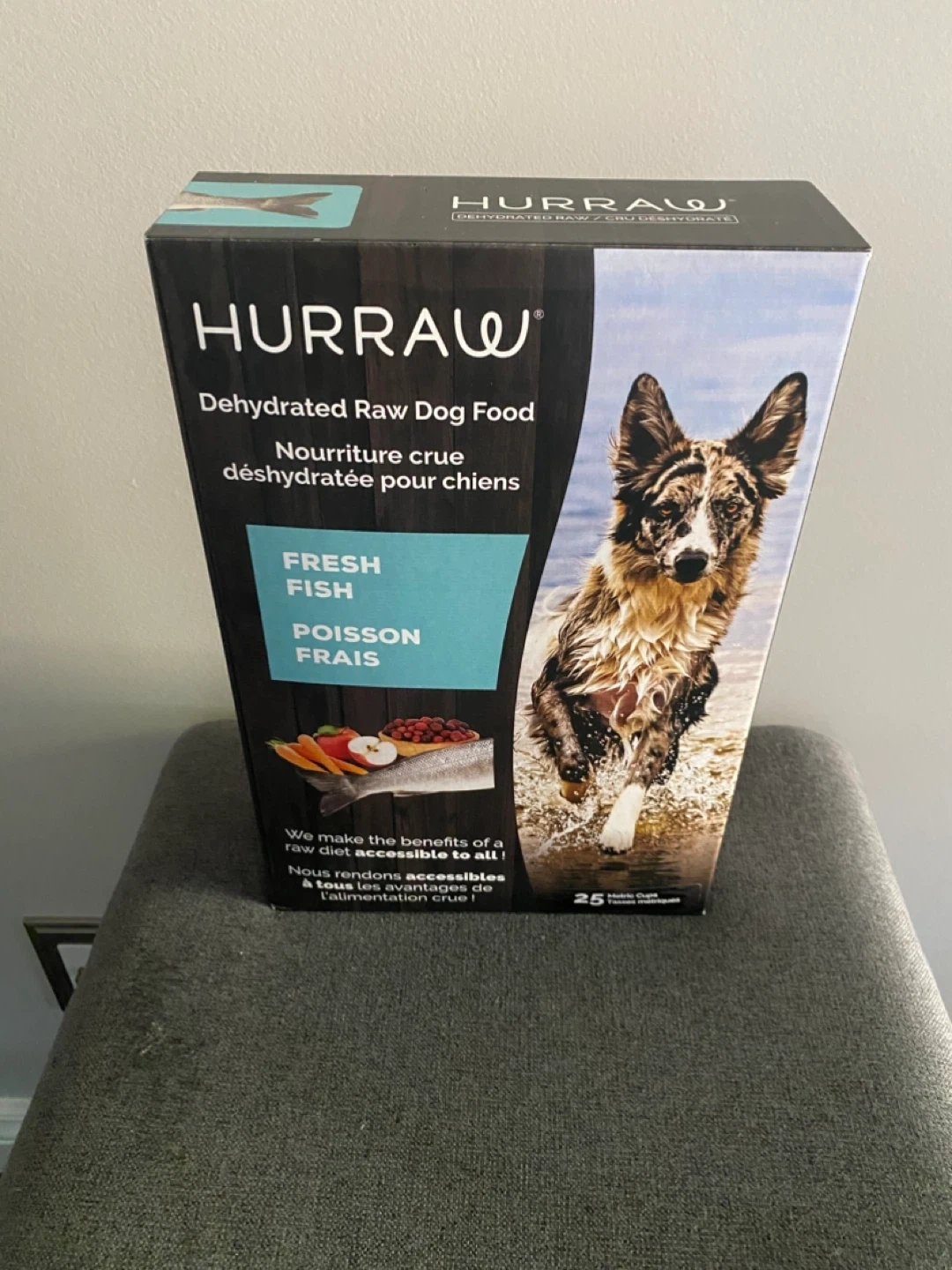 Selling two boxes of Hurraw Dehydrated Raw Dog Food in the Fresh Fish flavour! It's a nutritious and convenient option for your furry friend.