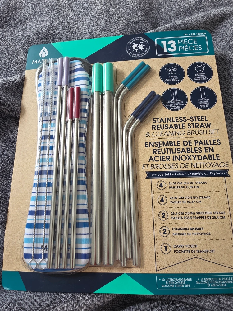 I have a brand new Manna 13-piece stainless steel reusable straw and cleaning brush set for sale! This set includes: