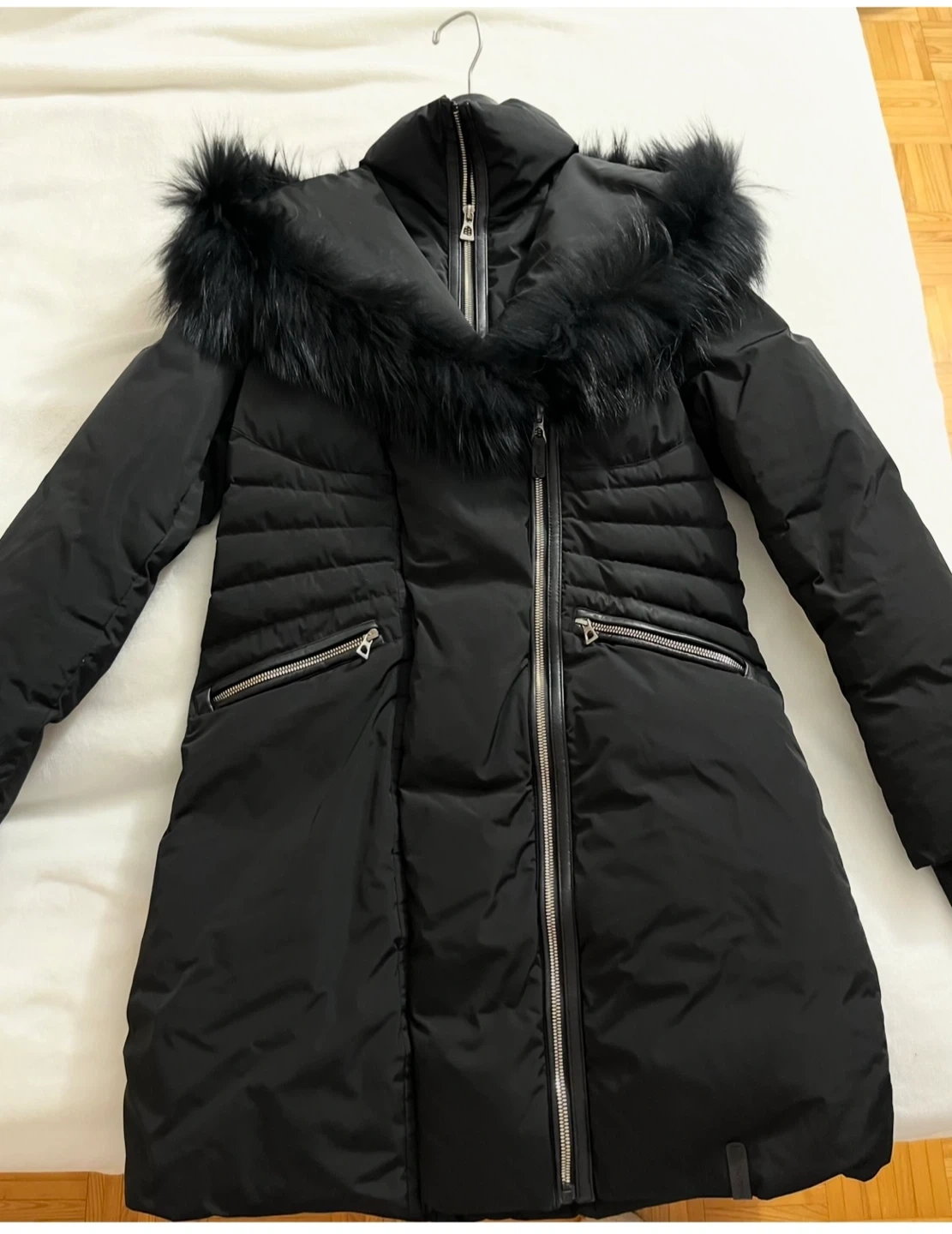 Selling a Rudsak black winter coat! It's in great condition and perfect for the cold weather. It has a fur trim around the hood and a stylish design. It's super warm and cozy!