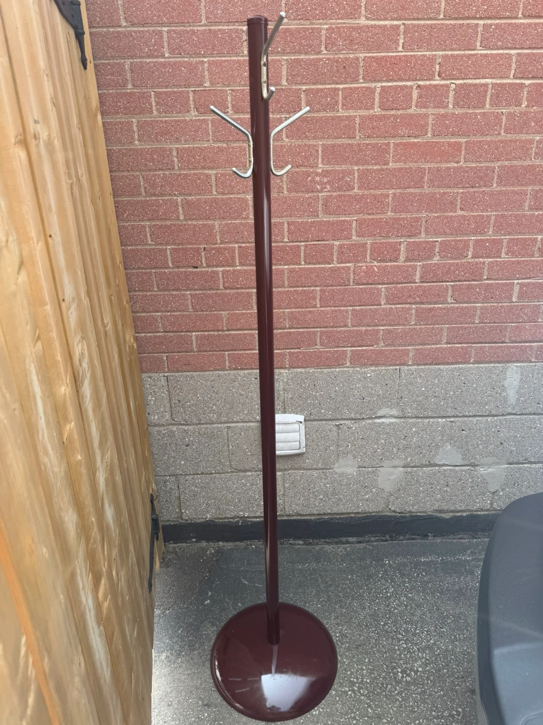 Looking to declutter your entryway? I'm selling a burgundy metal coat rack stand. It's a simple and functional piece to keep your coats, hats, and scarves organized. Perfect for small spaces! $45 for heavy duty industrial standing brown coat rack hanger, has 6 hooks The area to pick it up at Etobicoke, Rexdale and Kipling First come serve first!
