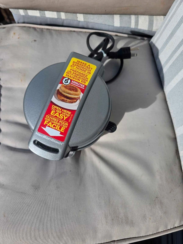 Whip up delicious breakfast sandwiches in minutes with this Hamilton Beach breakfast sandwich maker! This handy gadget does not look used and is ready to make you a speedy breakfast. Its compact design fits easily on any countertop, and it's super easy to clean. Perfect for busy mornings or a quick snack! Additional features include: * Easy to use * Non-stick surface * Makes one sandwich at a time If the ad is up, it's available! This little appliance is waiting to become the MVP of your morning routine.
