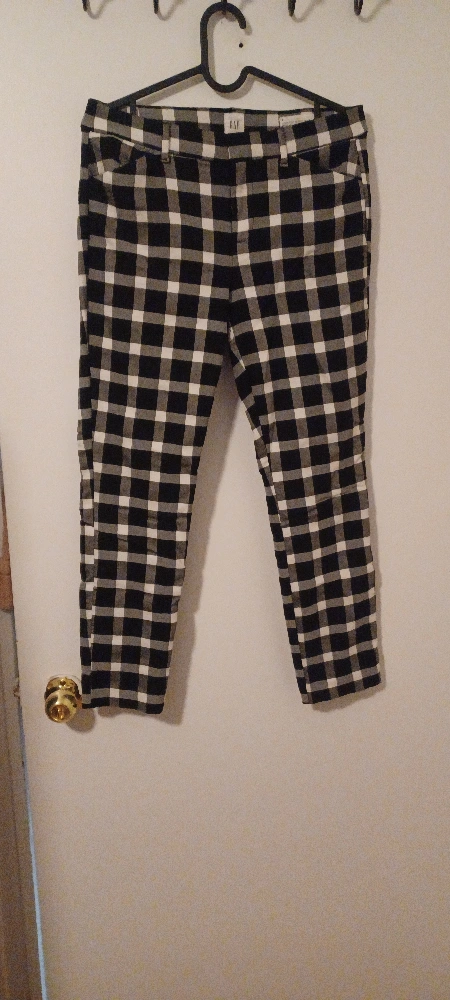 Selling a pair of GAP Signature Skinny Ankle pants in size 6! They feature a stylish black and white checkered pattern and are in great condition. Perfect for adding a touch of chic to your wardrobe!
