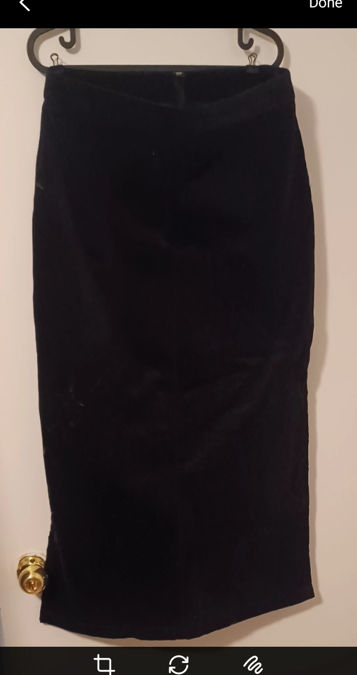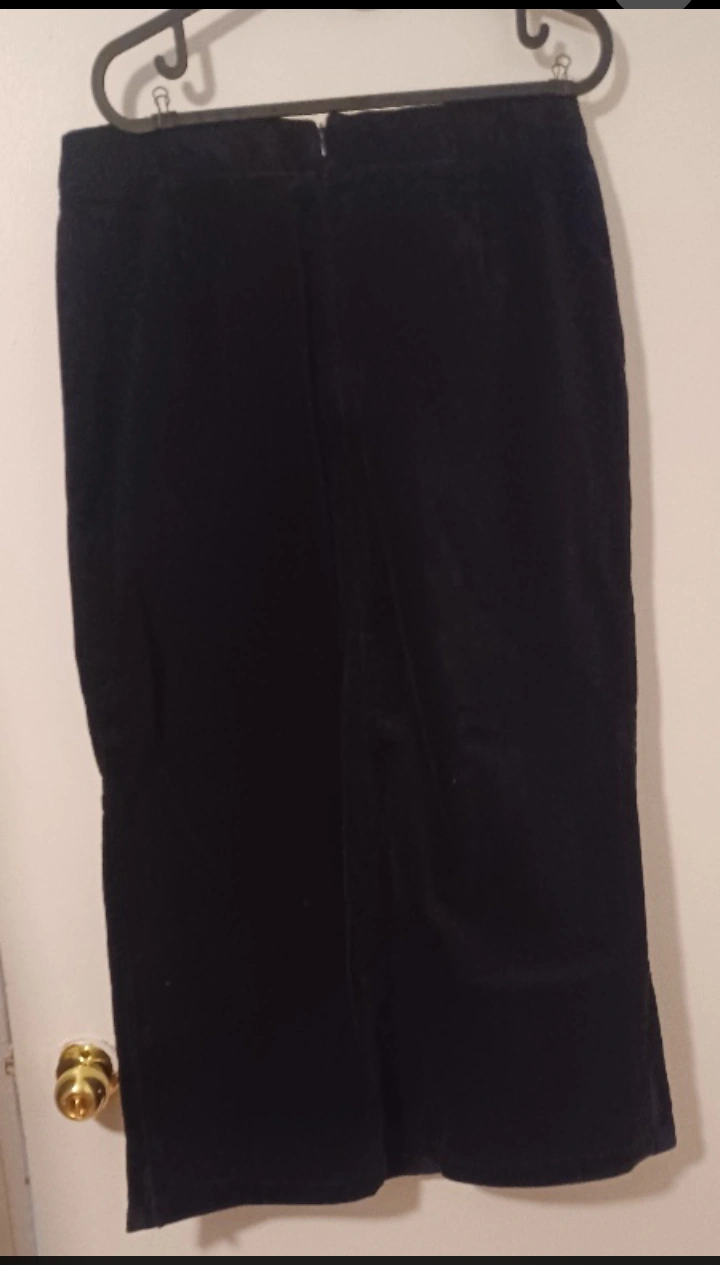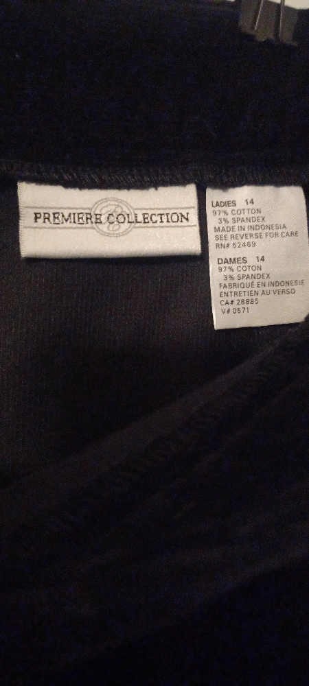 Selling a black corduroy skirt from Premiere Collection in size 14. It's made of 97% cotton and 3% spandex. Perfect for a classic and comfortable look!