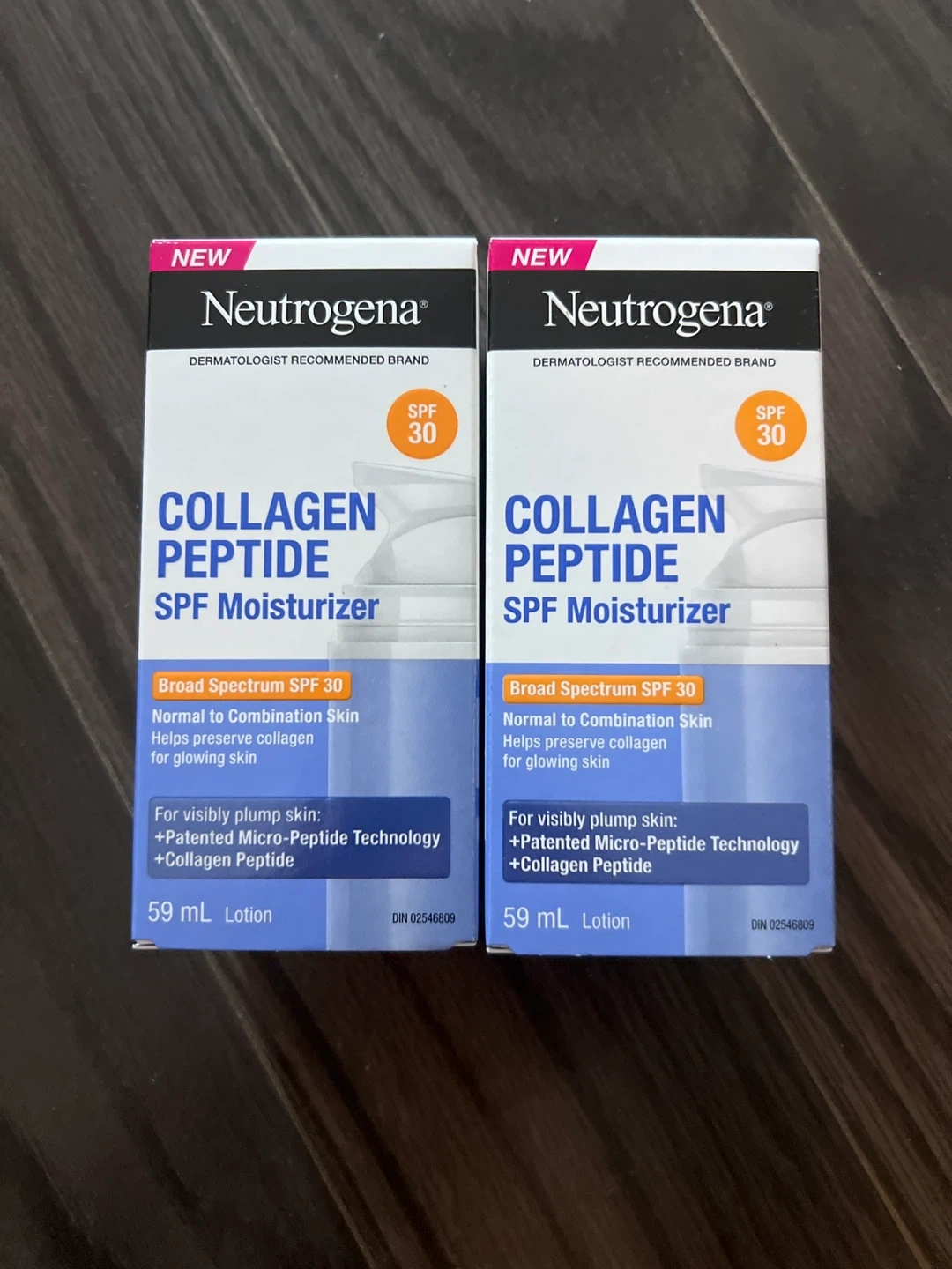 I'm selling a brand new Neutrogena Collagen Peptide SPF 30 Moisturizer! This moisturizer is designed for normal to combination skin and helps preserve collagen for glowing skin. It contains patented micro-peptide technology and collagen peptide. The lotion is 59 ml and expires in 2027/04