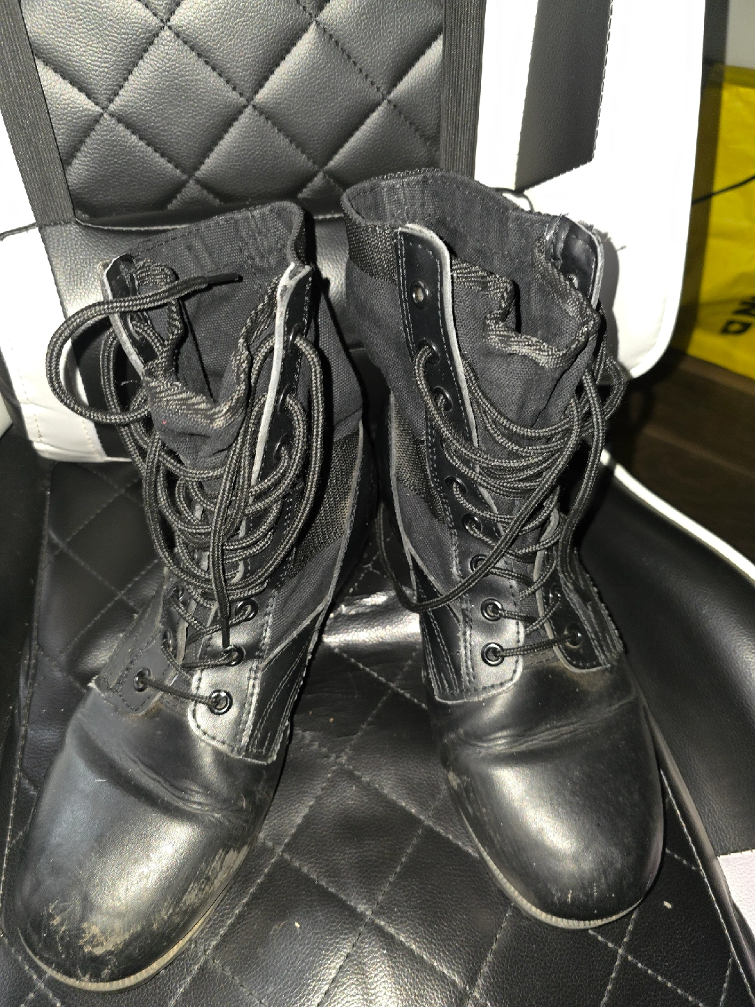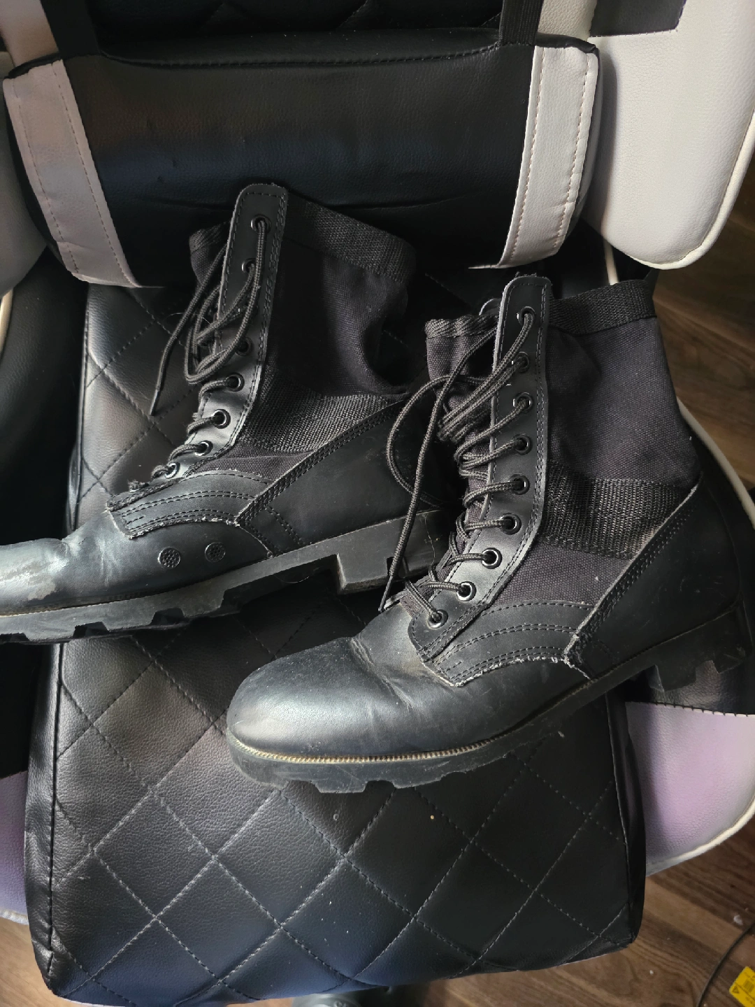 Selling a pair of black combat boots. They show some signs of wear, but are still in good condition for everyday use. Please see photos for details!
